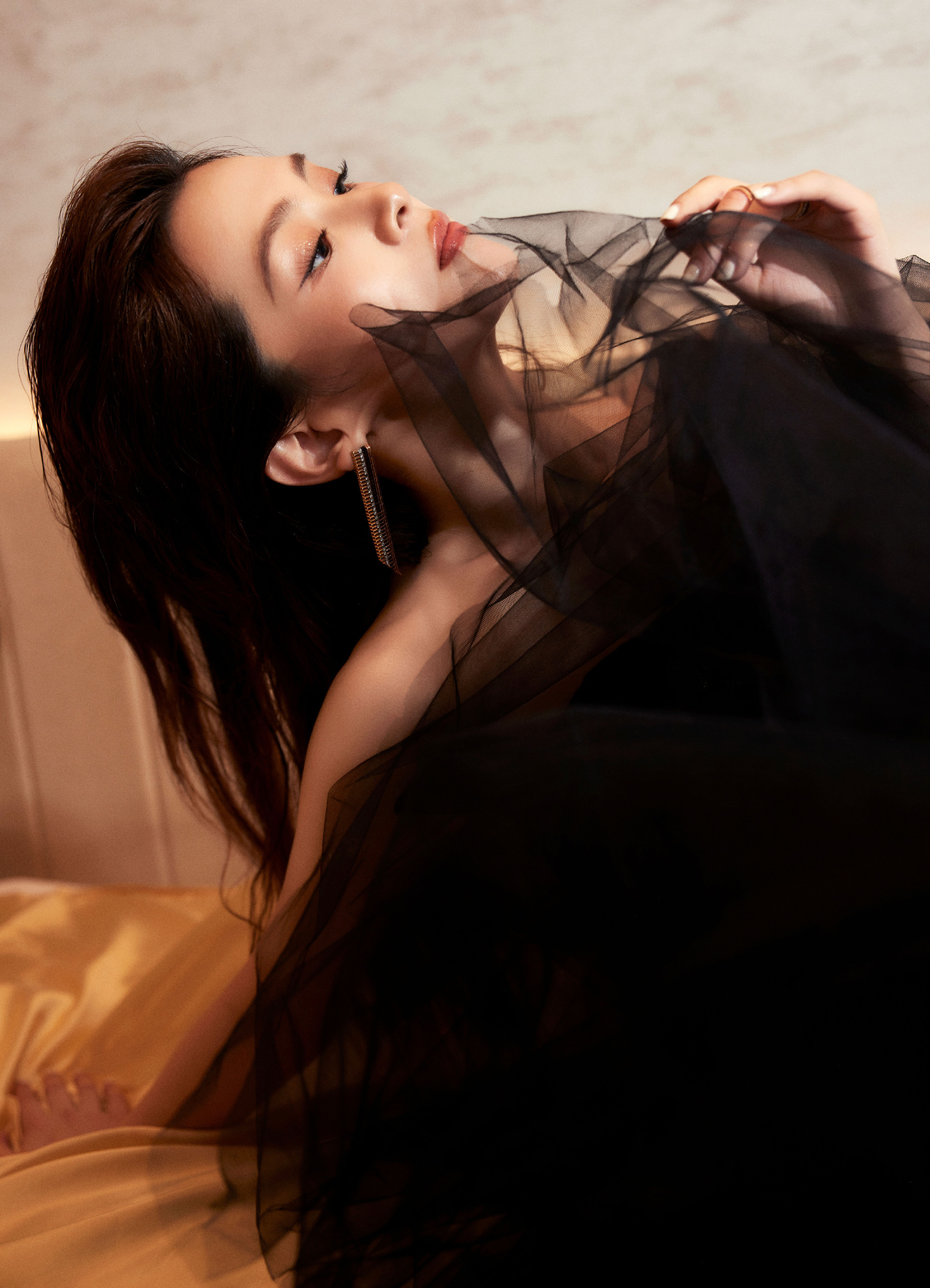 陈昊宇湿发背头,黑纱萦绕,柔美轻盈。陈昊宇