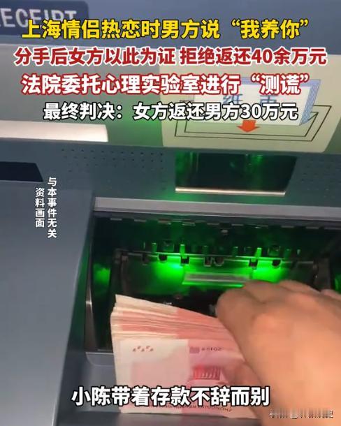 “我养你!”上海,男子和女友确定恋爱关系后,共开一个账户,一年攒下40多万元,谁知女友却把钱都转给了母亲,之后更是玩起了消失。[嘘] 男子找到女友后心灰意冷,要求其返还彩礼及存款等共计38万元,但女友却拒绝归还,还理直气壮地说:“你自己当初说要养我的”,法院判了! 同居一年,辛辛苦苦攒下五十七万,眼看就能凑个买房的首付,没想到感情突然出了问题,更让人没想到的是,女方转头就把这笔钱全部转给了自己的母亲,然后人间蒸发,这是发生在上海的一对情侣身上的真实故事。 吴先生和陈女士原是同事,相处久了走到一起,从去年十二月开始,他们住在了一起,吴先生收入不错,日常开销他负担了大部分,两个人还特意开了一个共同的银行账户,说好往里存钱,目标是买个属于自己的小窝。 吴先生每个月都会按时往这个账户里打一笔钱,陈女士偶尔也会存一些进去,就这样不到一年联名账户里有了四十多万,再加上吴先生自己其他地方的积蓄,两个人手头为买房准备的钱,差不多有五十七万。 变化发生在今年,陈女士因为公司裁员丢了工作,心情很低落,吴先生为了安慰她,说了一句情侣间很常见的话:“没事,我养你,”这本是一句暖心的情话,谁也没想到后来会变成一场官司的焦点。 到了十月,两个人感情稳定,顺理成章地开始商量结婚的事,吴先生带陈女士见了自己父母,老人家很高兴,当场包了一万一千两百元的红包当作订婚礼金,之后他们又去了陈女士老家,吴先生买了价值两万元的黄金手镯和三万元的礼品,表达自己的诚意。 但这次见面之后,事情的发展急转直下,十月底陈女士的母亲突然住进了他们租的房子,没过几天,吴先生就发现,那个共同账户里所有的钱五十七万,已经被陈女士转到了她母亲的账户里。 十二月初更让人措手不及的事情发生了,陈女士和她的母亲收拾了所有行李,没有打一声招呼就搬走了,等吴先生发现时,屋子里空了不少,连两人之间的聊天记录都被删得一干二净,他联系上陈女士,只得到了分手的回复。 人走了,钱也没了,吴先生只好选择法律途径,他起诉到法院,要求陈女士返还包括订婚礼金和购房存款在内的共计三十八万元。 在法庭上,陈女士觉得委屈,她坚持认为,吴先生既然亲口说了“我养你”,那么这些钱她自然有权支配,现在再来要回去,就是说话不算话。 双方说法完全不同,关键证据又难以认定,法院调解失败后,引入了一项特殊的辅助判断方式心理测试,也就是俗称的测谎,测试结果显示,吴先生关于存款是为了两人买房结婚的陈述,可信度较高,而陈女士的相关说法,则存在不少疑点。 法院审理后认为,吴先生长期、定期向共同账户存款的行为,目的非常明确,就是为了将来结婚安家所用,这笔钱在法律上属于“附条件的赠与”,这个条件就是结婚,现在婚约取消了,赠与的前提也就不存在了,女方应当返还相应的钱款。 最终,法院判决陈女士向吴先生返还三十八万元,一场由“我养你”引发的经济纠纷,总算有了一个法律上的定论。 这事看得人真是五味杂陈,原本是奔着结婚去的两个人,最后却因为钱闹到对簿公堂,还动用了测谎仪,真是电视剧都不敢这么拍,网友们看完也是炸开了锅,评论区的观点可以说是相当精彩。 “一句‘我养你’成了尚方宝剑了?这理解能力也太‘强’了。” “这已经不是爱不爱的问题了,这是人品和算计的问题,转账、删记录、搬家拉黑,一套操作行云流水,显然是计划好的。” “她说得那么理直气壮,也许在她和她家人的观念里,‘我养你’就等于‘你的钱就是我的钱’了,这种对亲密关系和经济边界混淆的认知,可能才是问题的根源。” “感觉这不单纯是骗钱,更像是一种根深蒂固的观念冲突,一方觉得在共同奋斗,另一方可能觉得你在履行承诺。” “谈恋爱时‘我养你’是情话,谈婚论嫁时钱就是共同财产,这界限怎么划清?这个案子给所有情侣提了个醒。” “支持法院判决!法律保护的是公平,不是任何一方对情话的无限度解读,以结婚为目的的赠与,目的没了,东西就该还回来。” “亲兄弟明算账,情侣和夫妻更要如此,共同账户的用途、大额赠与的性质,最好有个简单约定或留下痕迹。” “‘我养你’的浪漫,指的是我愿意为你分担生活压力、共渡难关,而不是我的财产无条件归你支配,这个概念不能模糊。” “原来彩礼和以结婚为目的的大额花费,分手时真的能要回来,以前还以为送出去就是泼出去的水。” “测谎结果虽然不能单独作为定案依据,但结合其他证据,对法官形成内心确信很有帮助,这案子判得明白。” 想问问大家你觉得在恋爱或婚姻中,应该如何设立双方都能接受的经济边界?如果你遇到伴侣将你们为结婚准备的共同存款,未经商量就转给其父母,你会怎么办? 欢迎在评论区分享你的见解和经历。 信息来源:纵览新闻