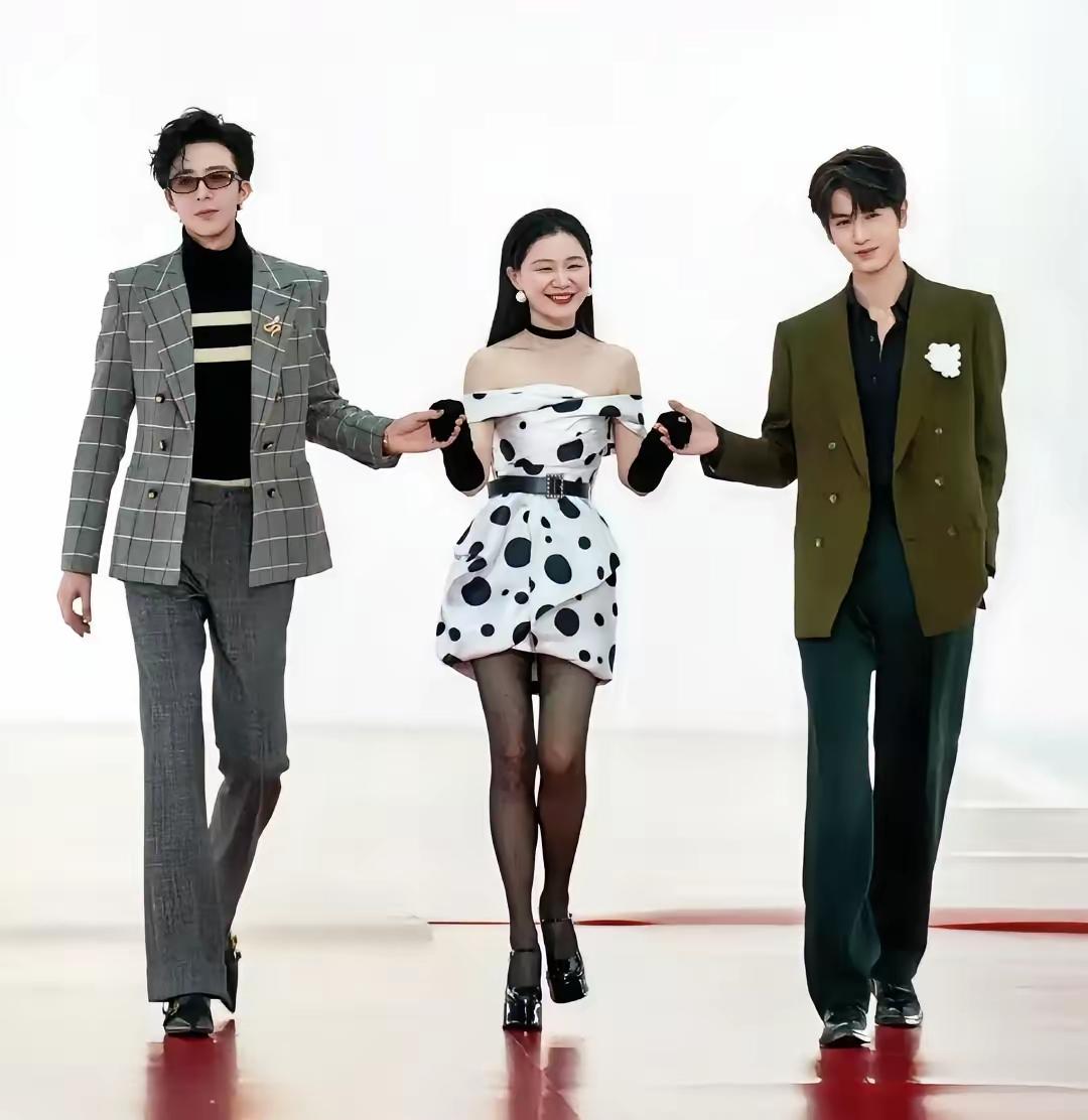 金靖的人生巅峰[偷笑]:两大190+美男牵手进场,这“齐人之福”、顶级享受,谁不想要呢……[奸笑][呲牙] 左凌赫,右宇宁。 如果是我,肯定要左顾右盼,根本忙不过来[偷笑]。这一刻,谁不想做金靖呢? 看看金靖那小表情,什么叫心花怒放[狗头],看金靖此刻的脸,就知道了!这是笑到眼睛都张不开,嘴都合不拢呀…… 刘宇宁张凌赫两位倒是很端得住,陪金靖搞怪的他们,嘴角带着微笑,但一直没笑场[呲牙]
