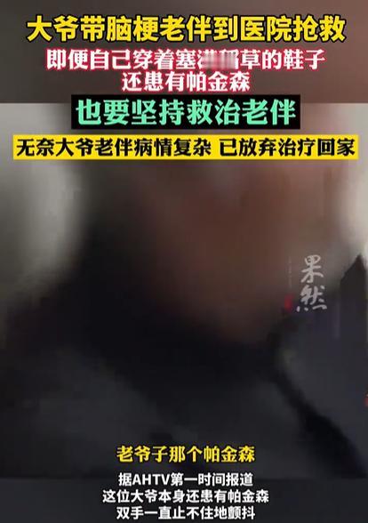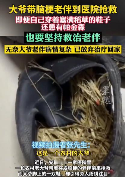 泪目!安徽一大爷带脑梗老伴去医院抢救,即便自己穿着塞满稻草的鞋子,还患有帕金森,