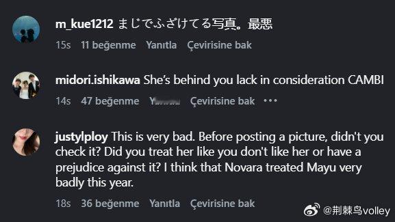 诺瓦拉昨日的胜利合影中,石川真佑被坎比挡在身后,未能出现在合照中。日本球迷对此情况尤为不满,而石川真佑的母亲也在评论区进行了发声, “她就站在你身后啊,太不考虑别人了,坎比!”女排国际排坛动态
