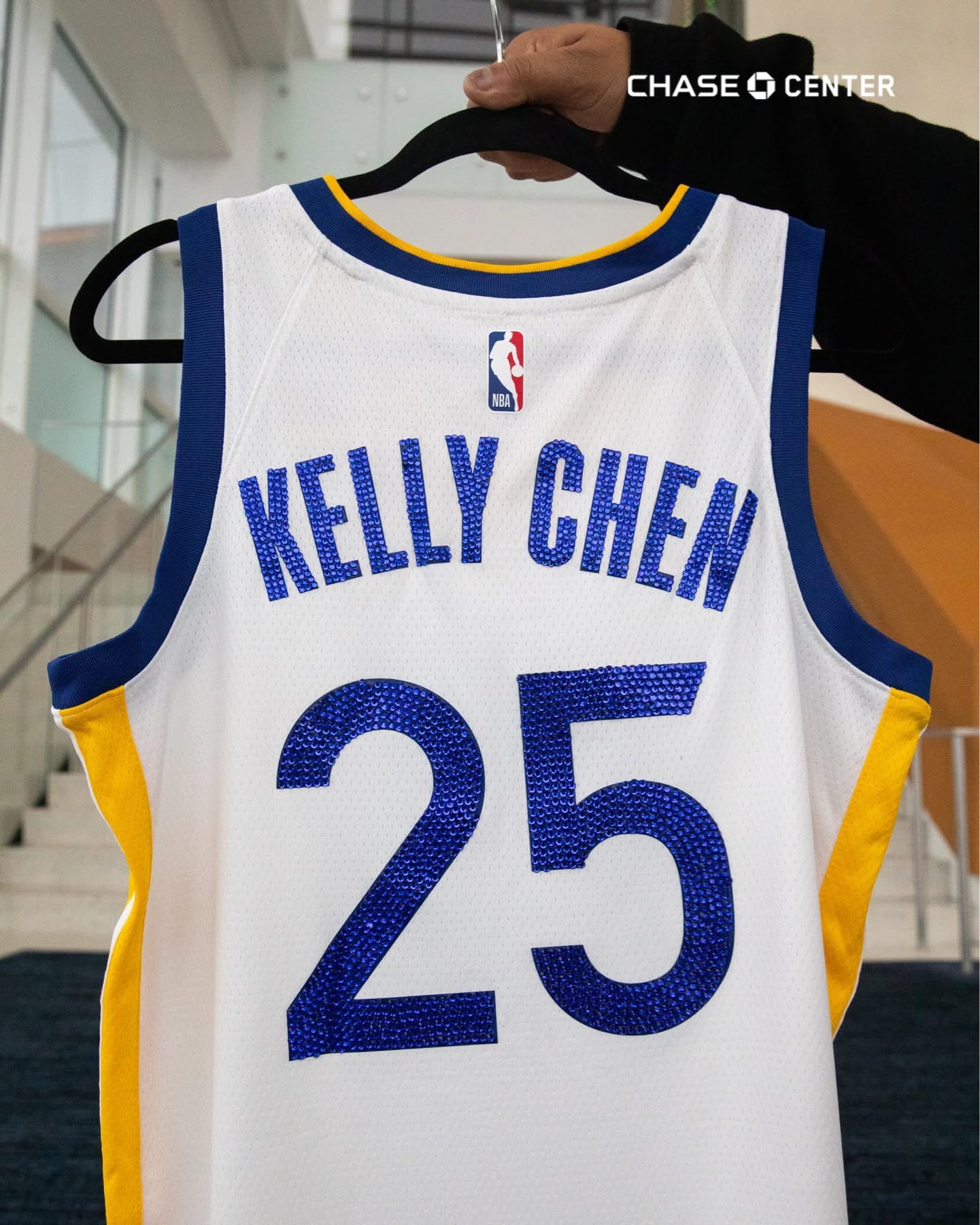 原來Kelly喺ChaseCenter表演,難怪收到呢件鑲鑽球衣,真開心!?