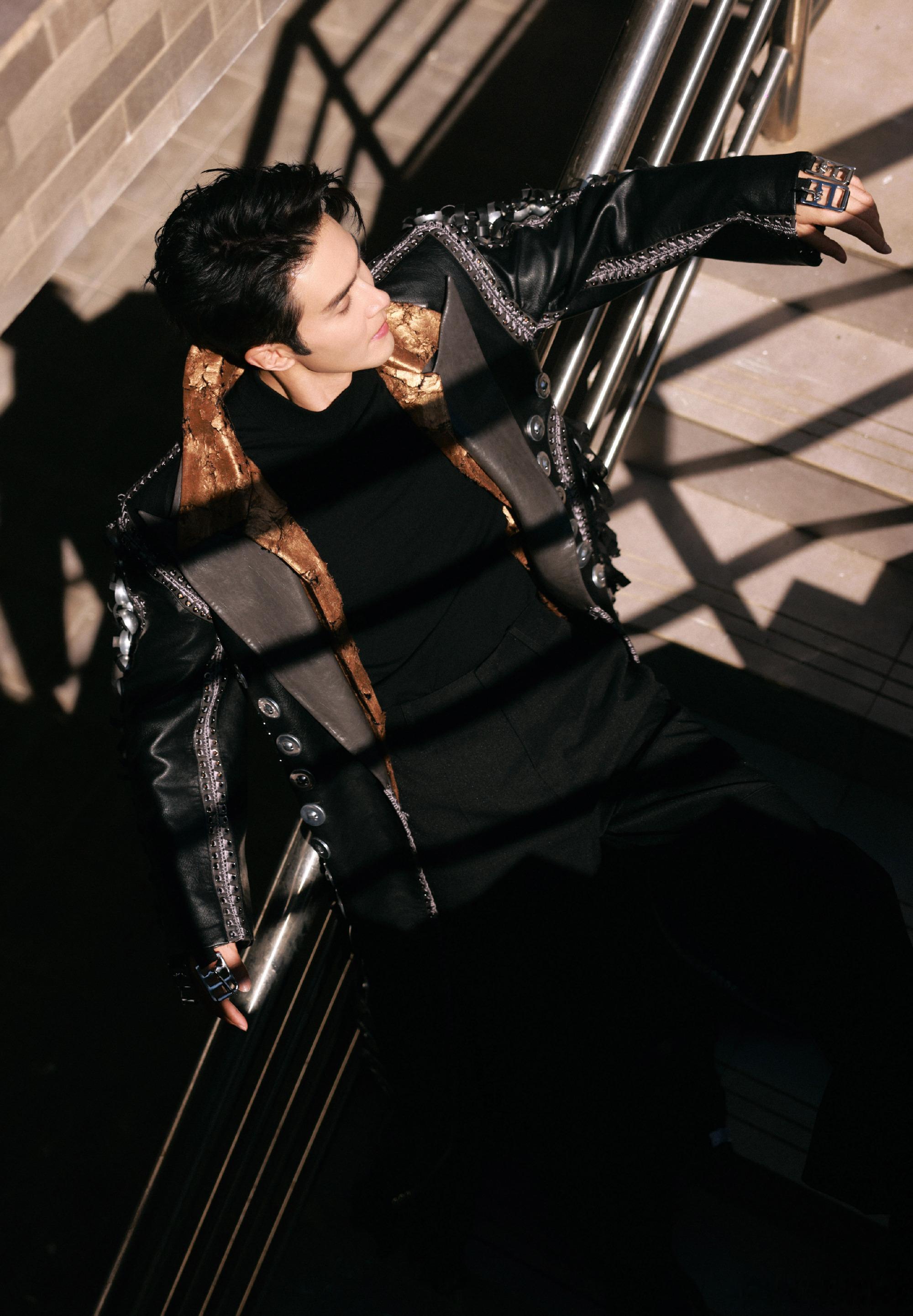 高伟光皮衣上的铆钉有二十多斤重 从时尚工业角度看,高伟光完成了一次高风险单品的高完成度展示。他打破了“设计服务于人”的常规逻辑,以强大的个人气质反向赋予了一件极致单品以灵魂。当铆钉的冷冽光泽与他的面部轮廓相互映衬时,我们看到的不是衣穿人,而是人与衣共同创造的超现实美学图景。