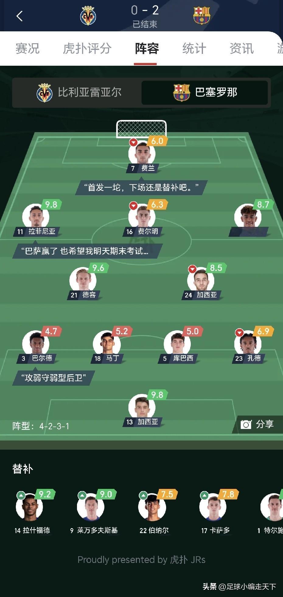 今年巴萨和皇马的表现都很抽象,巴萨赢球靠加西亚,皇马赢球靠姆巴佩。[捂脸] 谁能想到,今天的巴萨多打一人,最忙的是自家门将?巴萨的后卫应该一人分一部分工资给门将。 巴萨现在的后防线真是纸糊的,这场要不是门将霍安·加西亚表现神勇,这还真不好说。 这黄色潜水艇也是,把握机会能力太差了,不然不会那么被动,另外巴尔德真的是灾难发挥,就这样磕磕绊绊的巴萨欧冠真的走不远。 尤其进攻时巴萨后卫提的太靠上了容易被打身后,造越位战术又香又臭,碰到强队容易被捅成筛子。