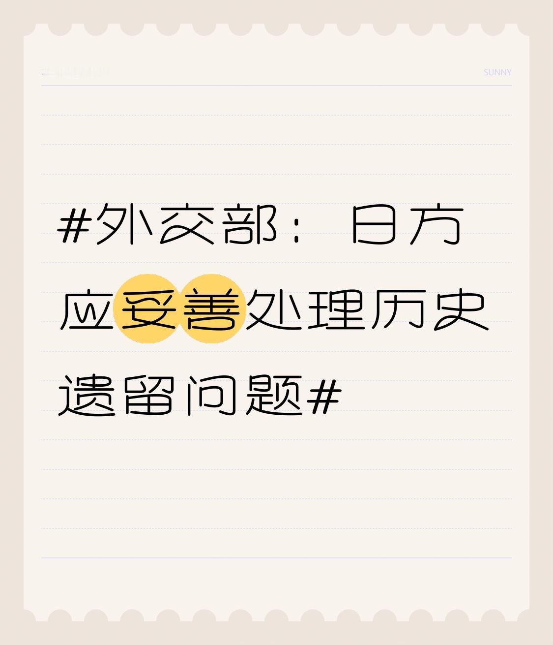 外交部:日方应妥善处理历史遗留问题 日本又整幺蛾子了!联合国教科文组织公布日本佐渡金山保护现状报告,这报告居然只字不提强征朝鲜半岛劳工的历史,还说和韩方紧密协商了,韩方都看不下去敦促其履行决议。 强征和奴役亚洲国家劳工,是日本军国主义对外侵略时犯下的严重罪行,这是铁一般的事实,不容抵赖。外交部发言人说得太对了,日方得正视和反省历史,拿出诚实、负责任的态度处理历史遗留问题。只有这样,才能取信于亚洲邻国和国际社会。希望日本别再揣着明白装糊涂,好好面对过去,别让历史的伤痛一直延续。