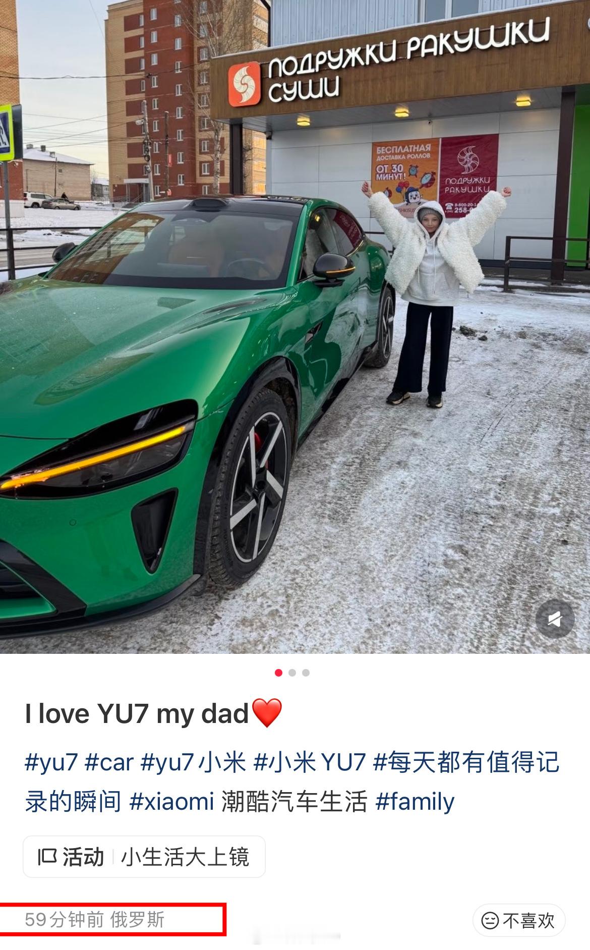 听说小米YU7在俄罗斯的还挺多的,没想到在网上还能刷到用户分享