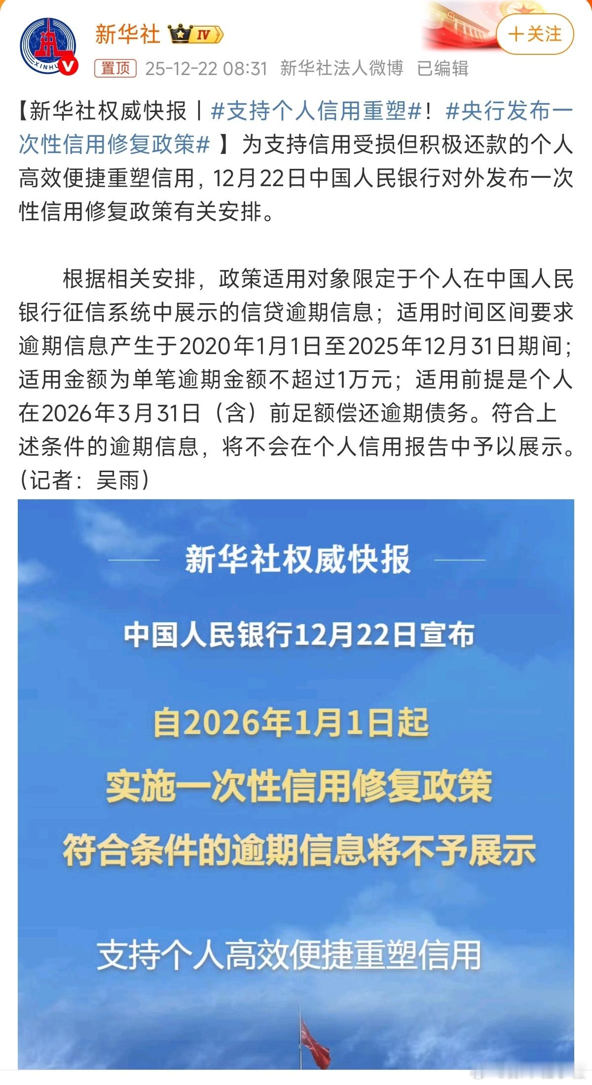 支持个人信用重塑很好!可以修复一次非恶意故意且金额单笔万元内的信用逾期了。之前身边朋友就遇到几十块信用卡账单忘了还被登记的情况,可以修复一次就宽容了许多
