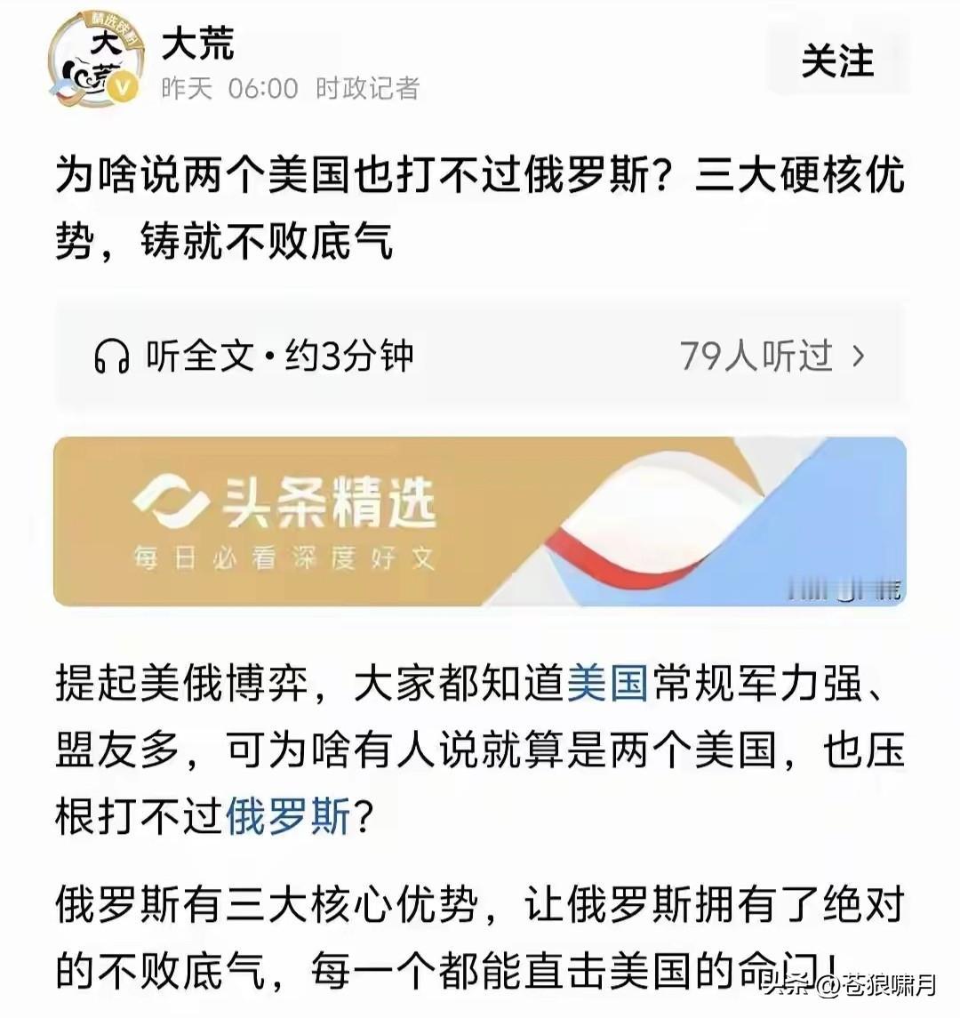 两个美国也打不过俄罗斯?三大硬核优势,铸就不败底气!哪三大硬核优势?这位“时政记