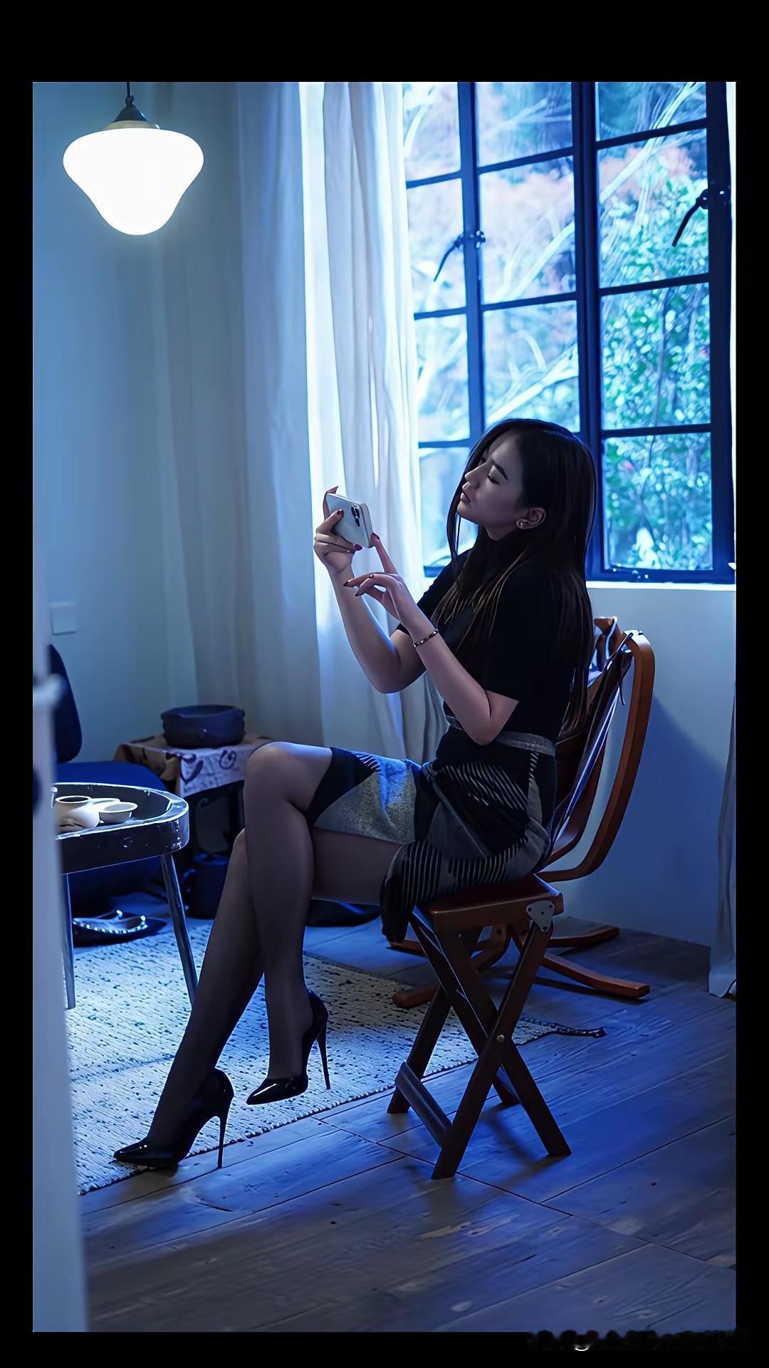 夜晚的静谧时光,独自一人,沉浸在手机的世界里,享受这宁静的夜晚。