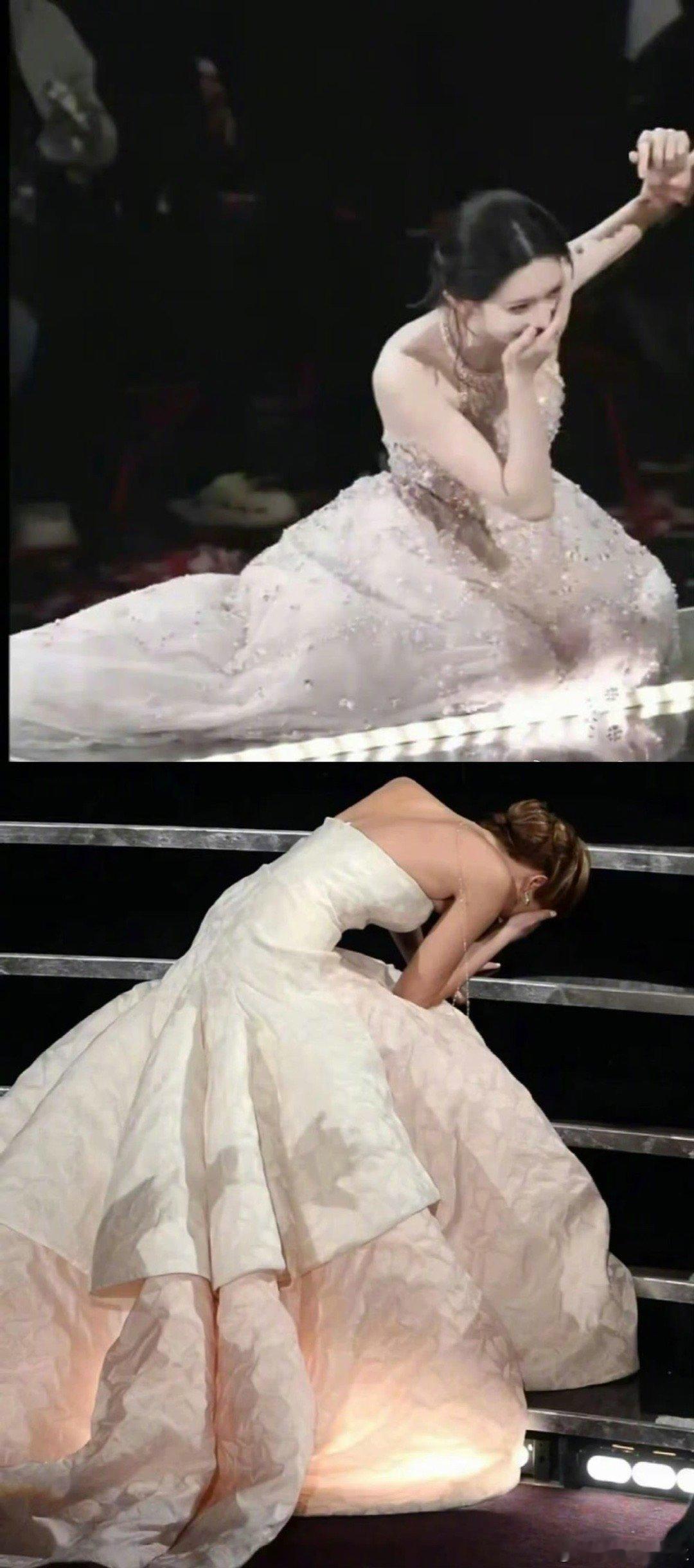 孟子义摔了后,扶着白鹿的丞磊手忙脚乱松开白鹿的手要过去扶孟子义摔了星光大赏内场星