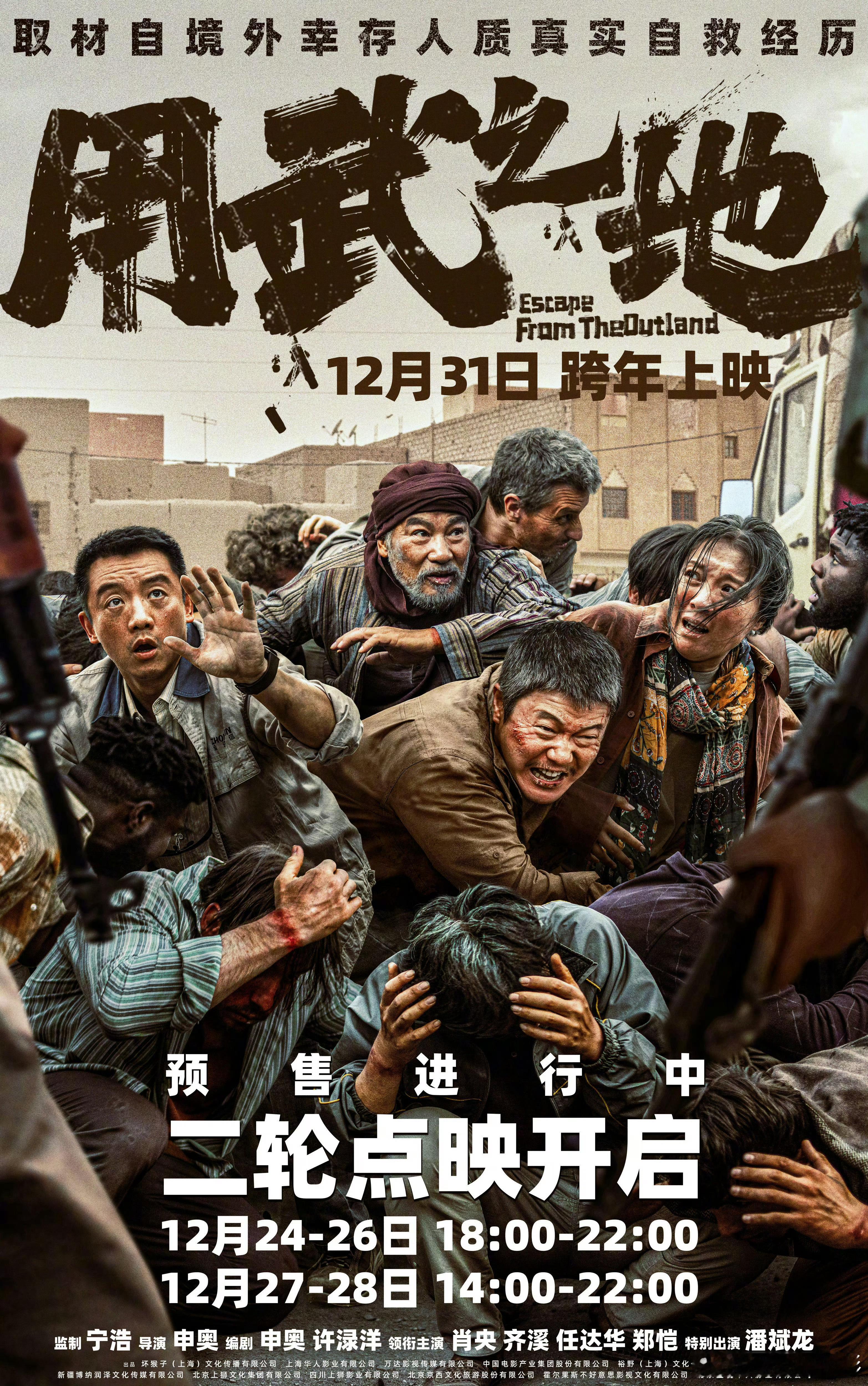 电影用武之地二轮点映开启 电影《用武之地》官宣开启二轮点映,将于12月24日-12月26日18:00-22:00与12月27日-12月28日14:00-22:00进行全国超前点映。电影用武之地 取材自境外幸存人质真实自救经历,全片采用IMAX特制拍摄,由宁浩监制,申奥执导,申奥、许渌洋编剧,肖央、齐溪、任达华、郑恺领衔主演,潘斌龙特别出演,预售已开启,12月31日跨年上映。电影用武之地预售点映开启