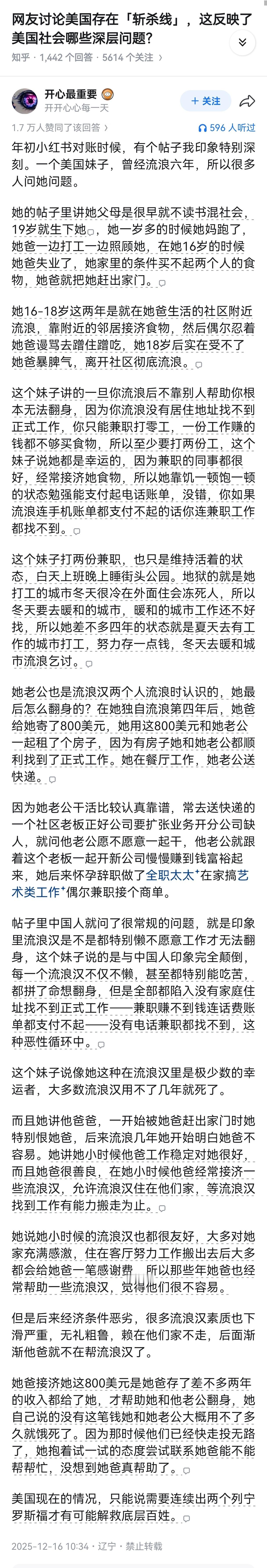 看完确实佩服,从流浪汉成功翻身。我比较震惊的是她爸根本不是赶她走,如果留着她等于父女俩都要掉到斩杀线了。但是一个女孩能吃多少东西?资本主义对人的异化和算计真的是深入骨髓。