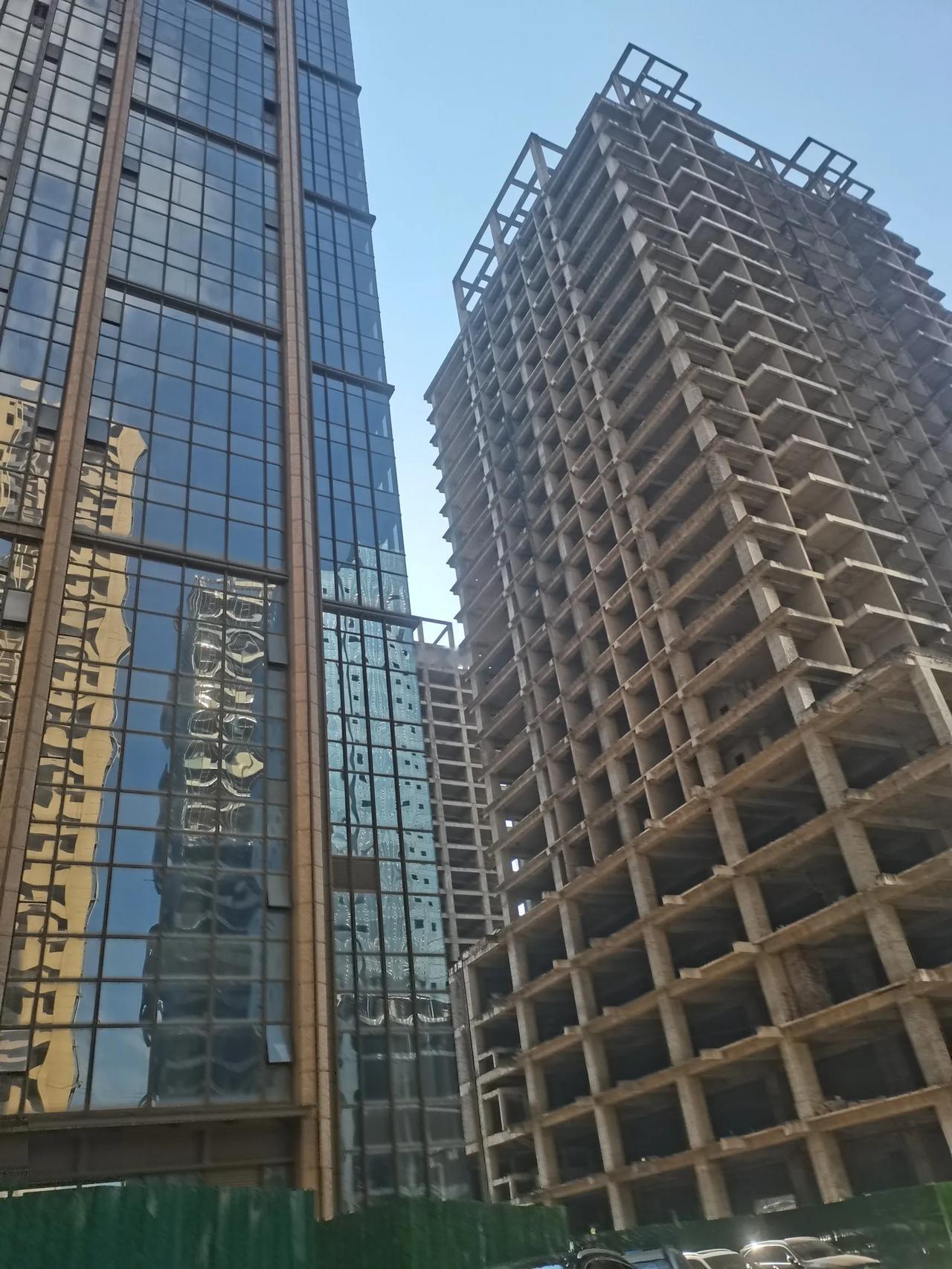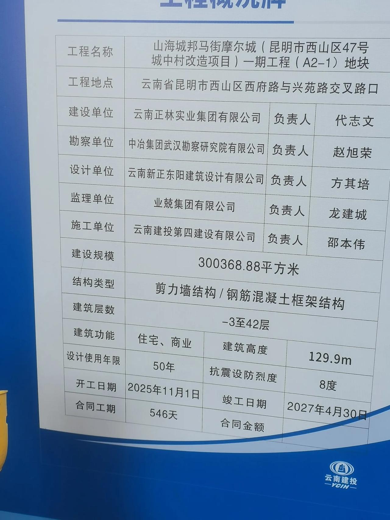马街山海城邦马街摩尔城一期工程A2一1地块终于复工续建了。把这个地块的住宅楼复工建好了的话,这个项目就还差6幢写字楼了,到时候这6幢写字楼应该会把大部分的改规,建成公寓楼,那样盘活的机会更大。 看看工期大摡是要到后年的5月初,希望能按时完工。现在有两幢里面还有好几户住进这个烂尾楼里面的,都是用布或者是铁皮挡住门窗的风,从别的楼里牵简易电线,还有的是用别的方式照明,真的是有苦说不出来,希望建设方云南建投按质按时完工,投资方按时付给工人们的劳动报酬。这个房子有1百多米高,看起来真的现在全是钢筋水泥啊!希望这个遮修布早日弄好,摩尔城这个名字说明这个项目体量真的很大,规划是太超前了吧!还是好多年前来昆明就开始建的了,还好当时我大哥没有买,要不然又是跟这些业主一样的遭遇。 以上仅供参考,属个人意见!