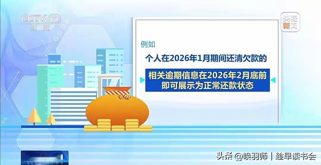 一次性信用修复政策来了!央行推出重磅政策,为小额逾期记录提供“一键修复”机会。2020年至2025年间产生、单笔金额1万元以下的个人信贷逾期,只要在2026年3月31日前足额还清,相关记录将从征信报告中移除。 整个过程“免申即享”,无需申请,系统将自动处理。还款时间决定记录“清零”时刻:已还清的,2026年元旦起不再展示;明年一季度还清的,次月月底前处理完成。 重要提示:政策完全免费,谨防任何收费代办修复的骗局。这是国家助力个人重塑信用的宝贵机会,请符合条件者把握时限,轻装前行。征信恢复方法 征信逾期贷款 征信新政策 征信补救 征信逾期 逾期贷款 征信恢复新规 逾期流程 担保人征信多久能消除 征信是多久更新一次 个人征信如何最快恢复 信用卡逾期还款后多久征信恢复? 怎么才能把征信短时间内修复 你的征信修复了吗 如何恢复个人征信 征信上的记录会保留多久?