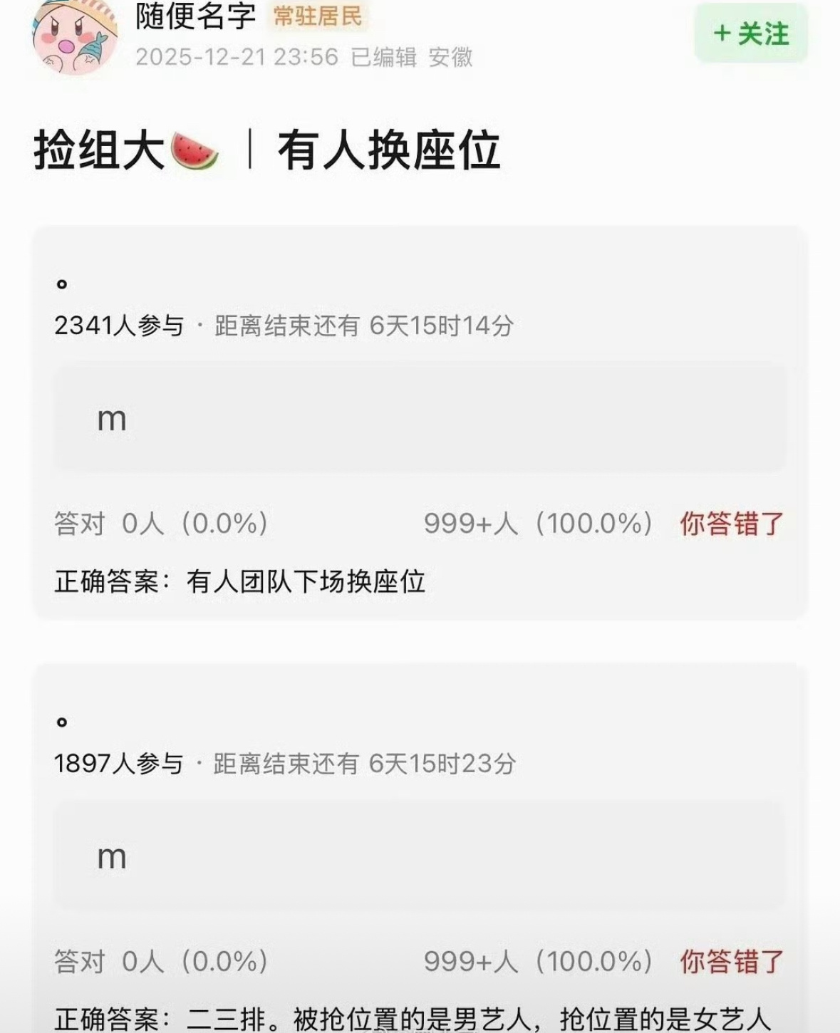 🍉丞磊昨晚坐在第三排,有人说是某女艺人跟他换位置了,换到了第二排。第二排的女明星流量区的有:周也 王玉雯 田曦薇 毛晓彤 王影璐 李兰迪你们觉得谁最有可能?