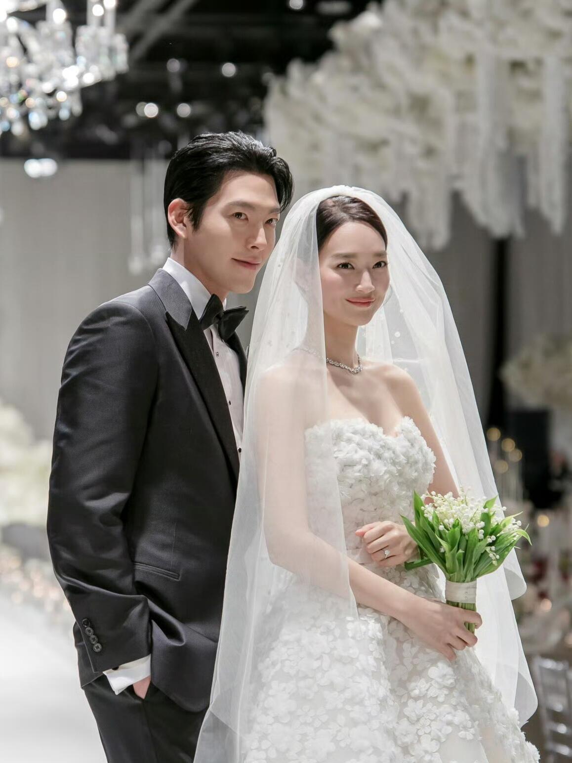 申敏儿和金宇彬公开了婚礼现场照片 姐这条婚纱好美