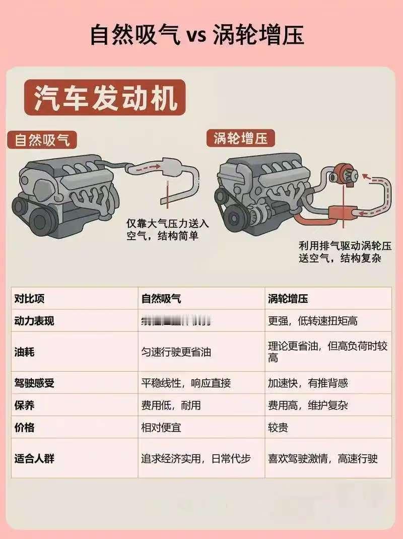 同排量的车为啥就是带“T”的更猛,原因就是这个小东西。 开过自吸跟涡轮车的朋友可能会有一个疑问,为啥带T的就是比自吸猛?超车时一脚油门的推背感,爬坡时不费劲的底气,这其实全靠发动机里那个叫涡轮增压器的“小钢炮”,今天就掰开揉碎给你唠明白。 涡轮增压器说白了就是个“空气压缩机”,个头不大却藏俩关键叶片,靠发动机排出的废气驱动,所以全称也叫废气涡轮增压器。咱们都知道发动机烧汽油得靠空气,空气越多烧得越充分,动力就越足,涡轮干的就是把更多空气塞进气缸的活儿。 那它具体是咋把动力提上来的? 咱接着说,废气从发动机出来温度高、冲劲大,一吹就让涡轮叶片疯狂转,转速能飙到十几万转,比发动机转速得高十几倍。叶片一转会带动另一边的压气机,把外界空气使劲压进发动机,进气量直接翻倍,配合多喷的汽油,动力自然蹭蹭涨,1.5T能干过2.0自吸就是这么个原理。 可天底下哪有十全十美的东西?涡轮增压器这么好就没有一点缺点吗? 跟大家说还真有!不知道大家有没有听说过涡轮迟滞,这个其实就是涡轮车的一个小弊端,想要涡轮增压器工作是需要一定的转速区间的,家用小排量的话基本是在1400转到2000转之间,就比如你想加速的话深踩一脚油门,但是得需要两秒左右的时间涡轮才会发力,这个过程就是涡轮迟滞。 另外同排量下涡轮增压车型普遍要比自然吸气的车型工作温度高,所以在发动机的耐用度上普遍不如自吸车型,特别是之前大众系列的涡轮车型都普遍存在烧机油的现象,这就是高温工作带来的问题。 问题来了,缺点不少,那为啥现在小排量涡轮还能成为主流热门? 答案很简单,它太懂咱们车主的需求了,别看它只是个辅助零件,却是如今家用车的标配。不管是通勤代步还是偶尔撒欢,涡轮增压车型都能兼顾动力和省油,把发动机的潜力挖得明明白白。 这就是涡轮增压器的门道,不起眼却能让小排量车拥有大能量,难怪现在越来越多人选带T的车。文 张国成【来自懂车帝车友圈】