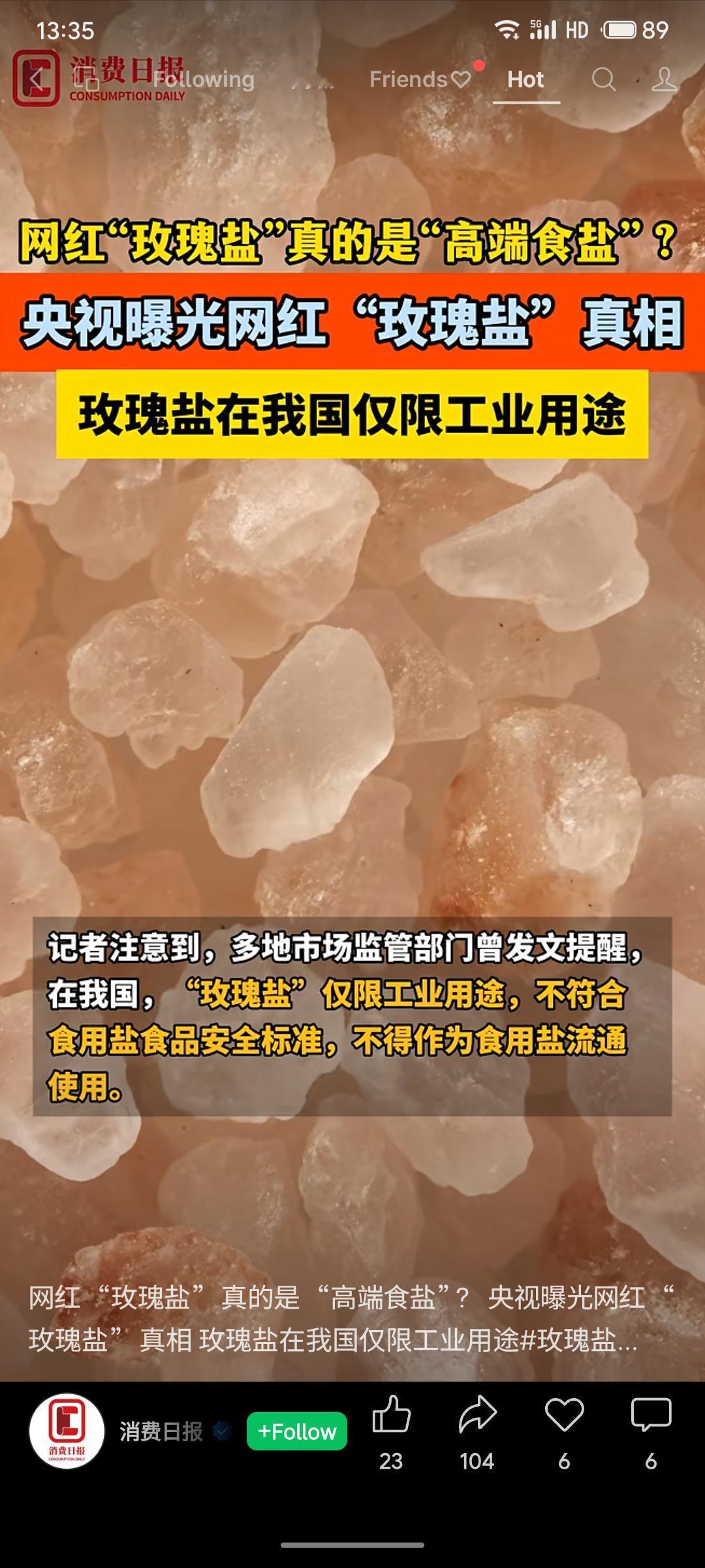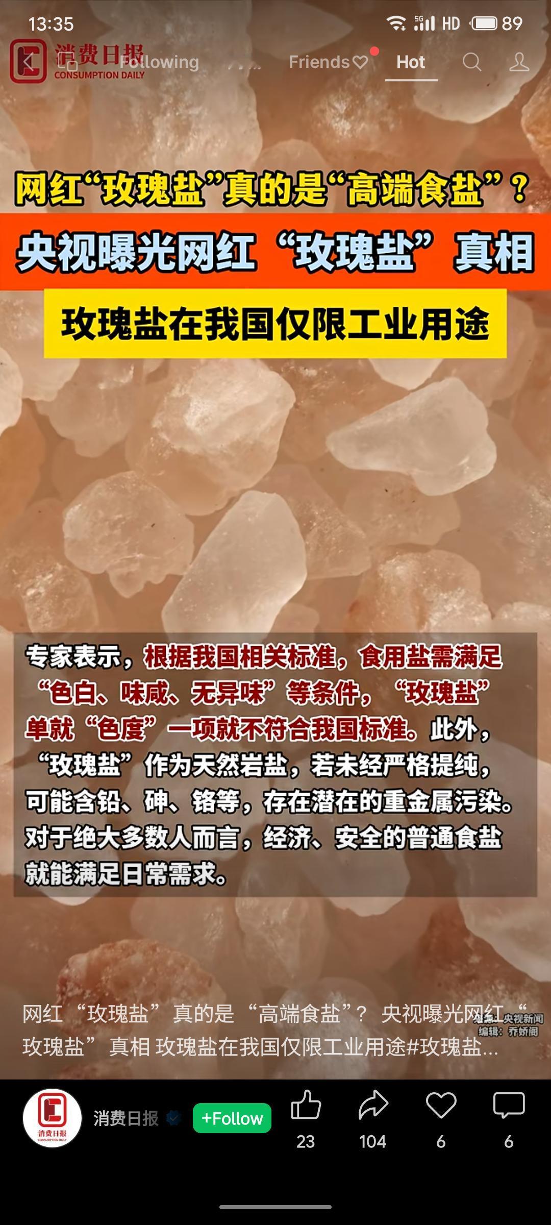 央视曝光网红“玫瑰盐”实为工业用途,不符合我国食用盐标准。其颜色不达标,且检测出铅等重金属,存在安全风险。专家提醒,日常选用普通食盐即可满足需求,不必盲目追捧。