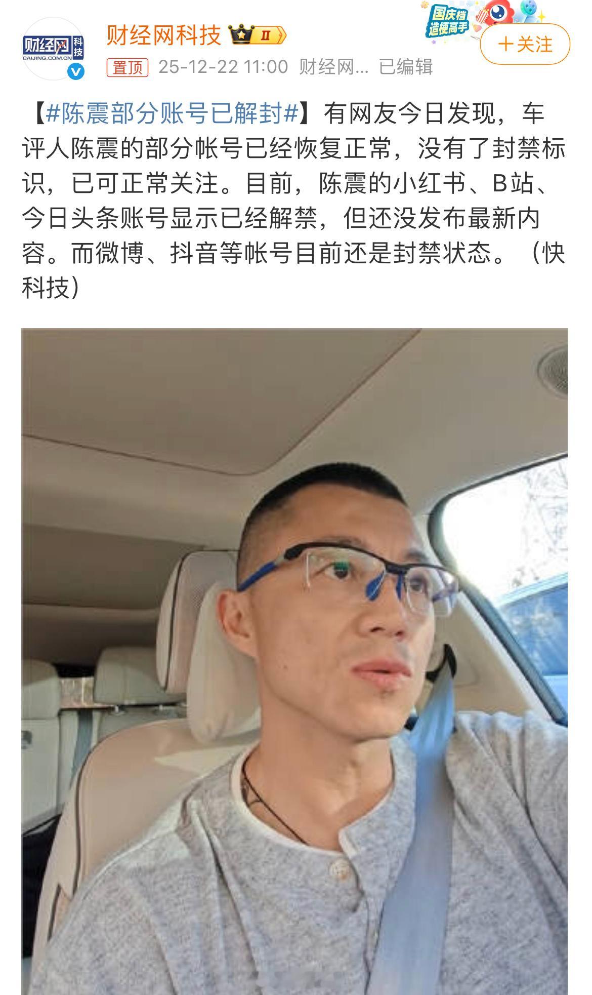 目前陈震这个平台,还是禁言状态,其他平台确实有的解除禁言了。