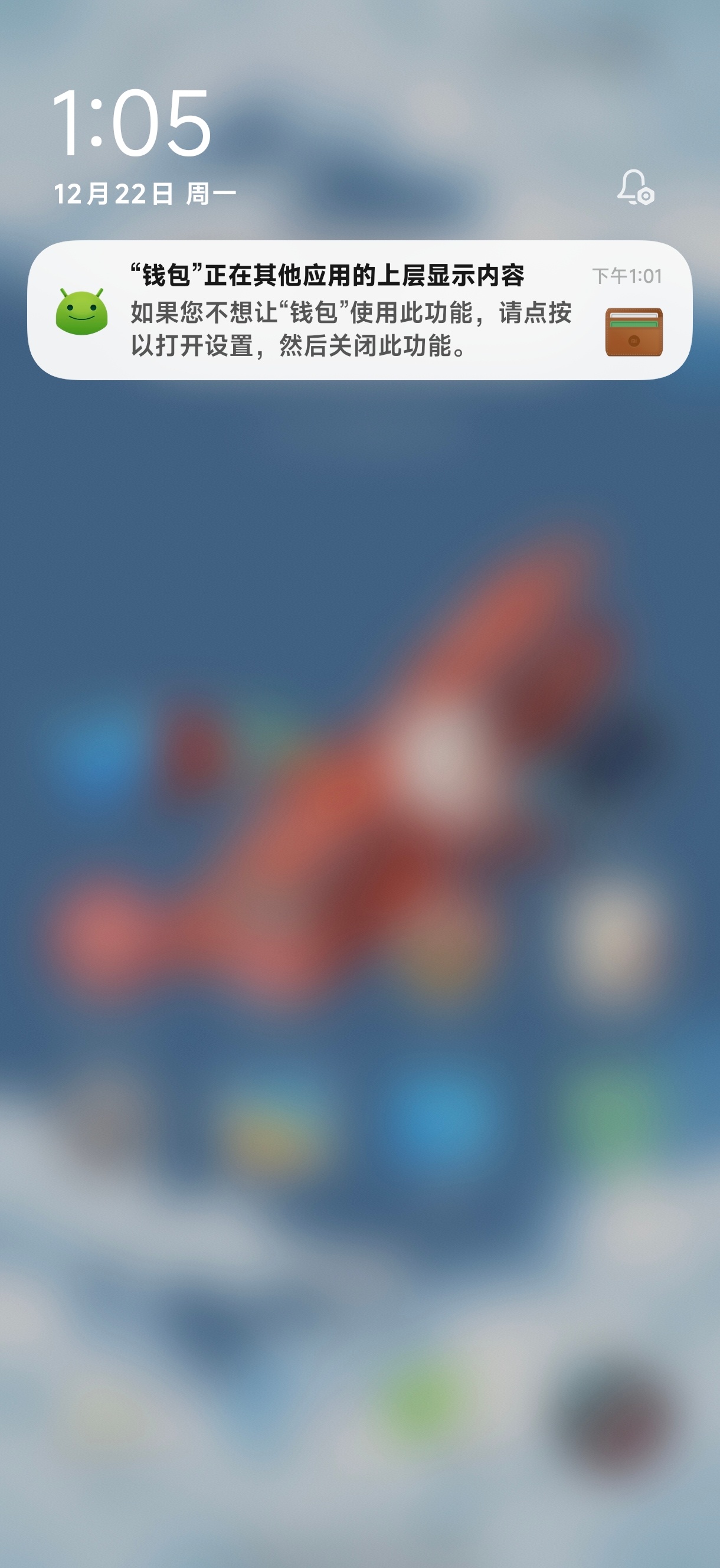 有个问题啊,澎湃OS3通知栏老是出现这个钱包正在其他应用上层显示的提示,但是我的钱包 我连服务协议都没同意,根本就没点进去过还关不掉,每次划了,过一会又出来了,兄弟们这是啥情况