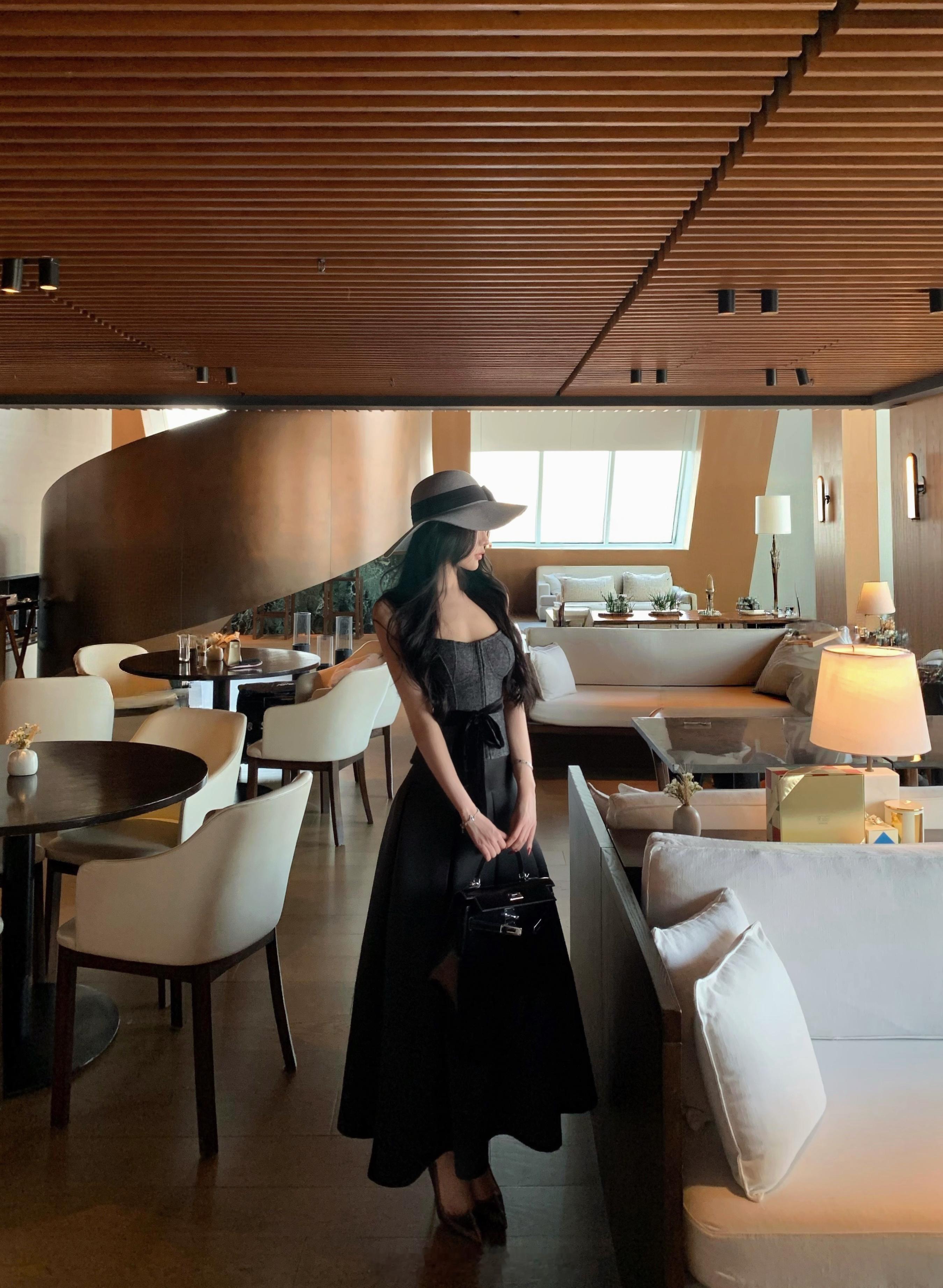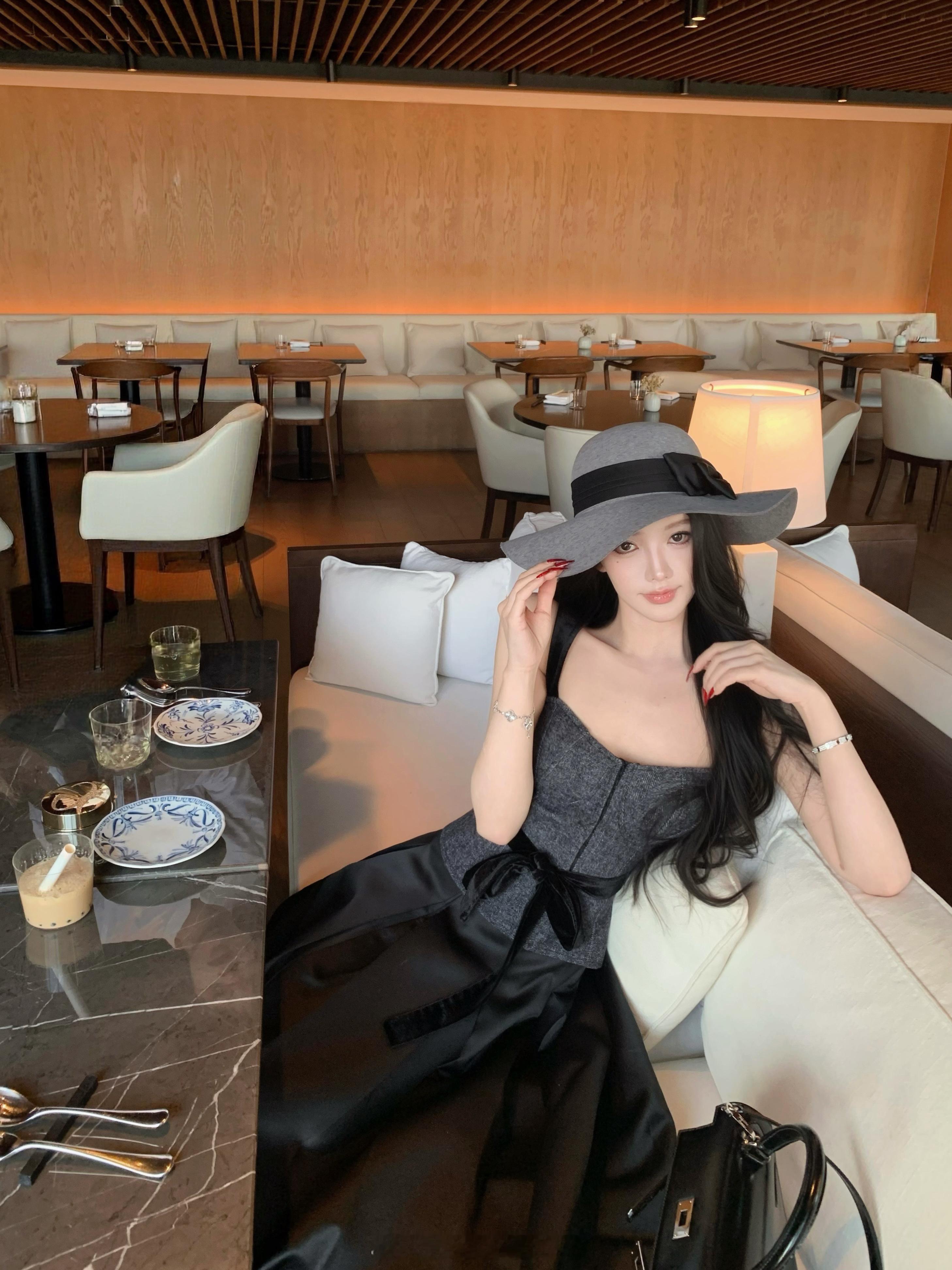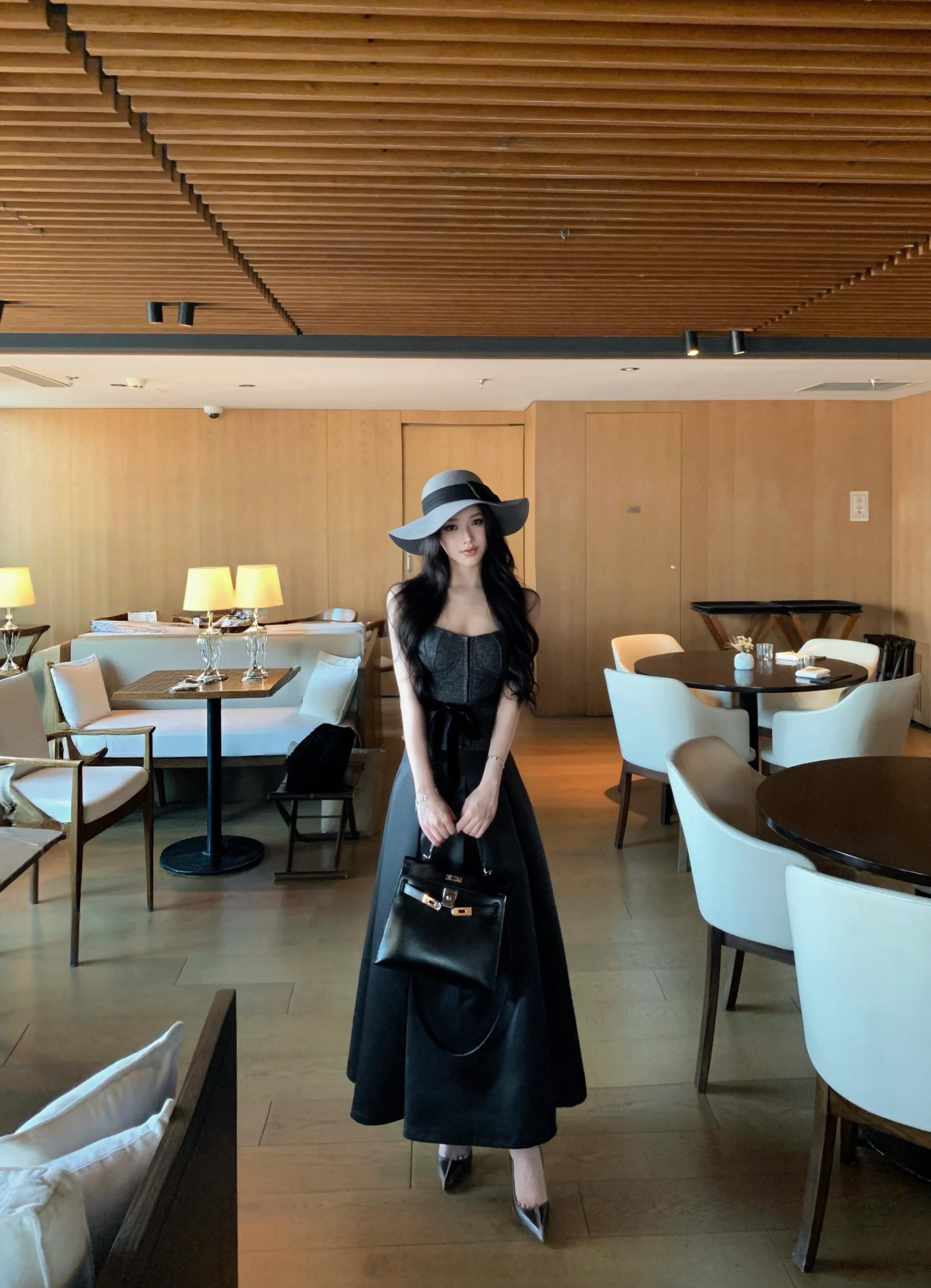 这期里比较常规的无袖裙🐰大裙摆➕收腰做得很好不想要太多露肤度的可以选这条还有一