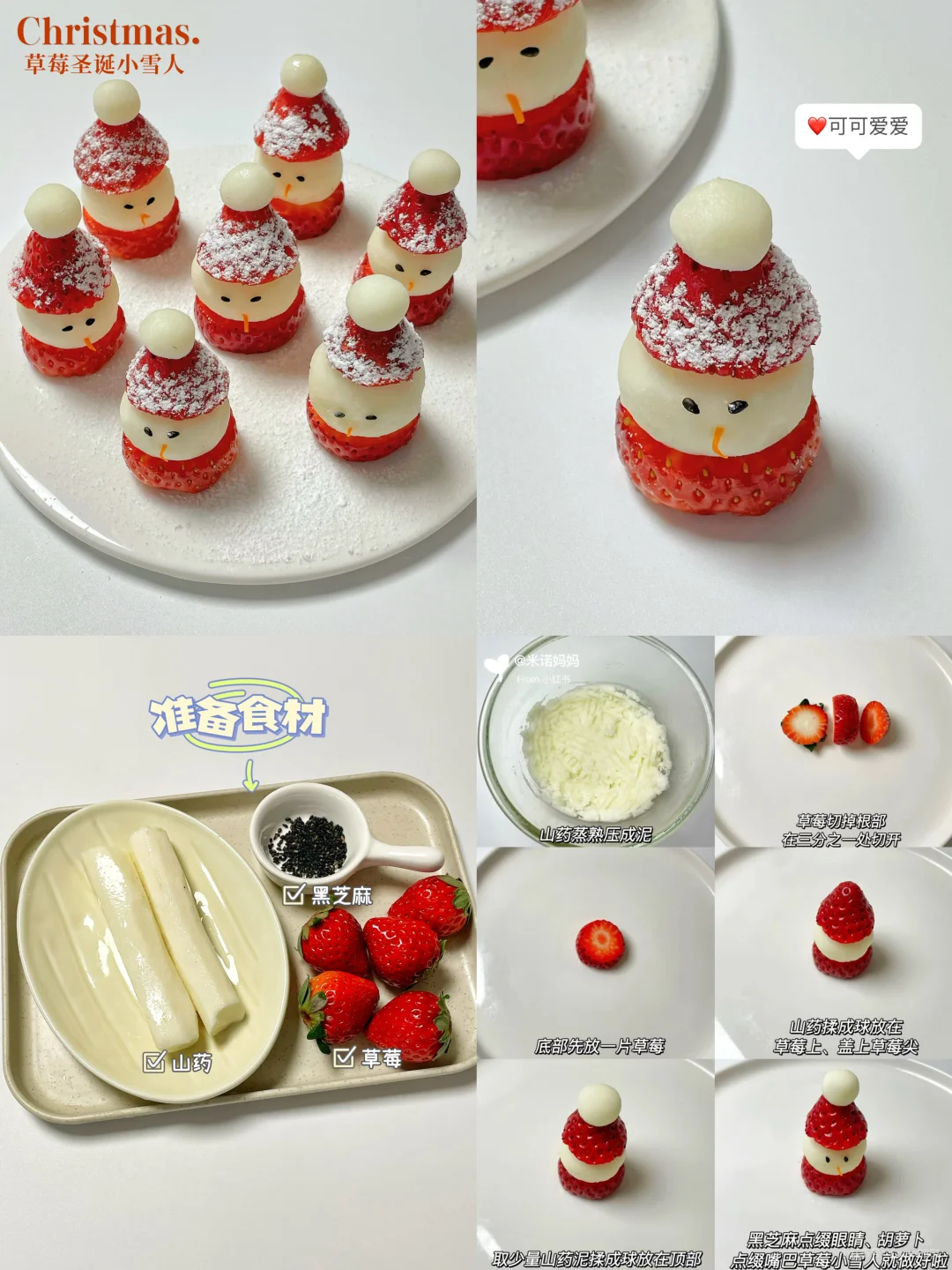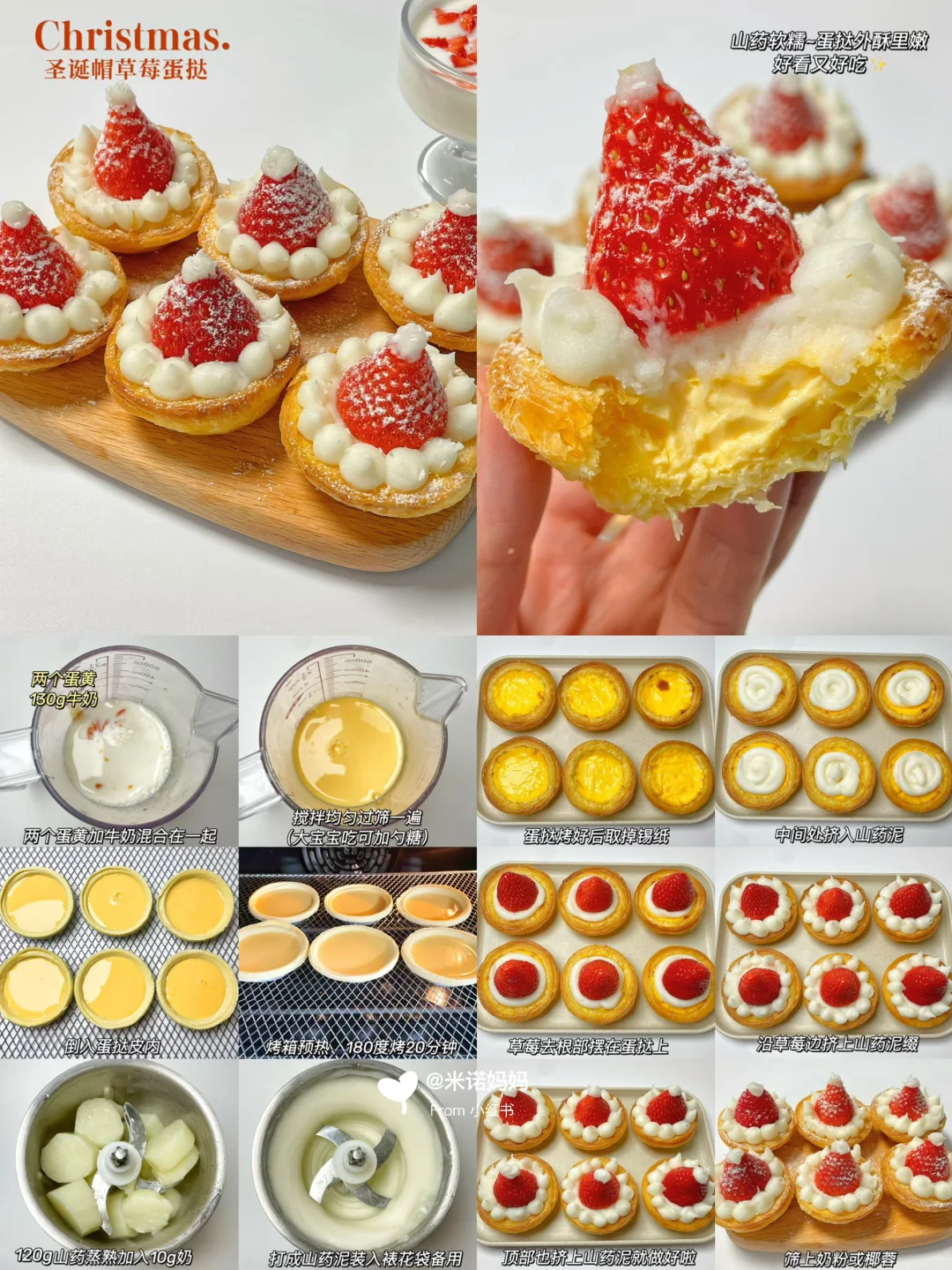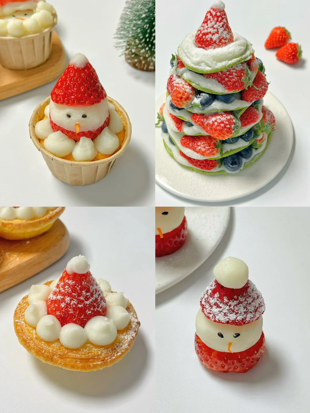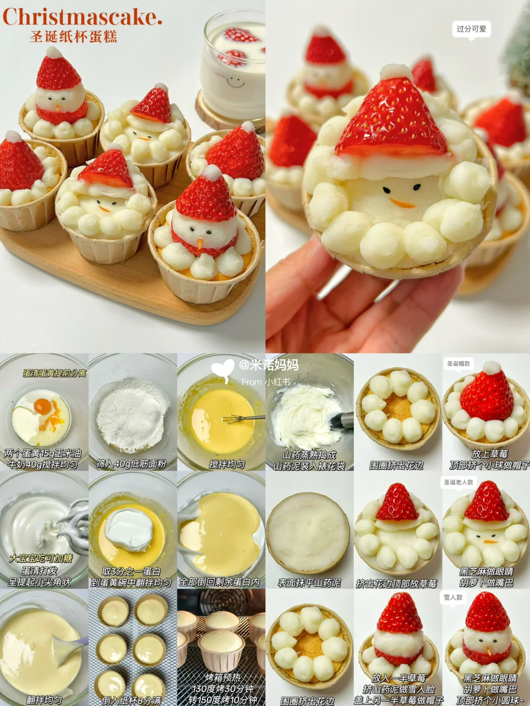 Hi 大家好呀❤️ 离圣诞节的脚步越来越近啦 !4款小宝宝也能吃的圣诞节小甜品,氛围感拉满,小朋友舍不得吃系列~简单好做,好看好吃,属于宝宝的圣诞仪式感不能少,都去码住~ - 1️⃣圣诞纸杯蛋糕 2️⃣圣诞树松饼 3️⃣圣诞帽草莓蛋挞 4️⃣圣诞小雪人 🌈具体教程请看图文哦~ ✔️一岁以上宝宝可加糖~ ✔️圣诞树松饼水果可根据喜欢做调整~ ✔️做好后可直接吃,也可筛点奶粉增加口感哦~ - 圣诞节快去给小朋友安排起来吧,小朋友会超喜欢哒[拥抱R]
