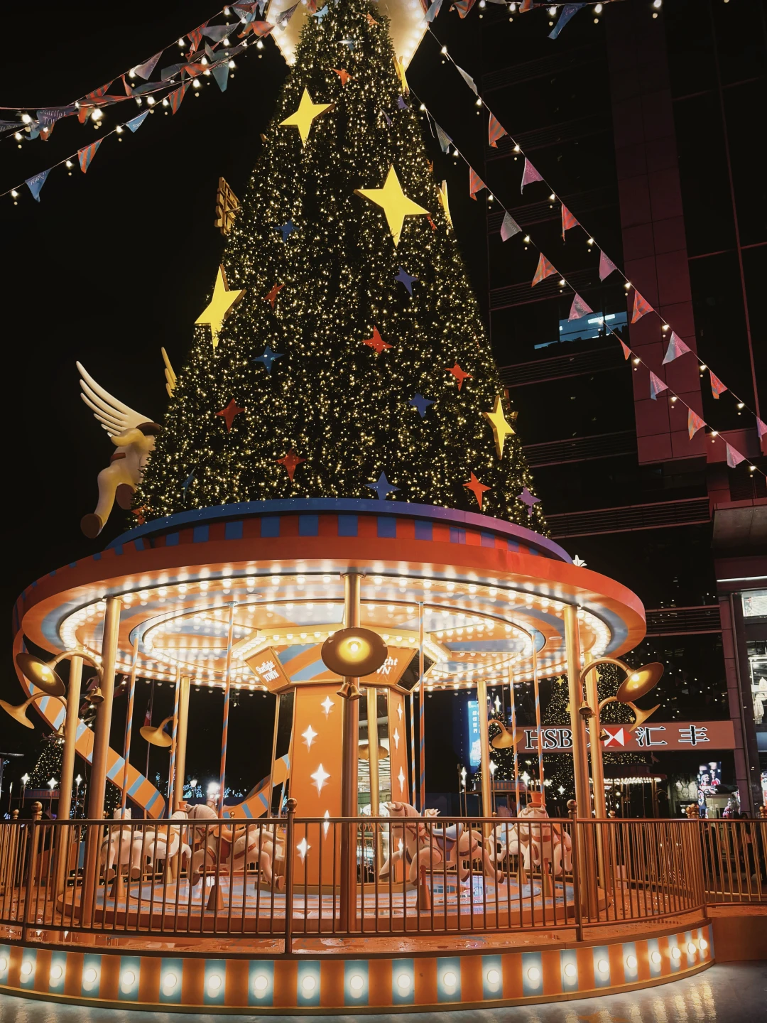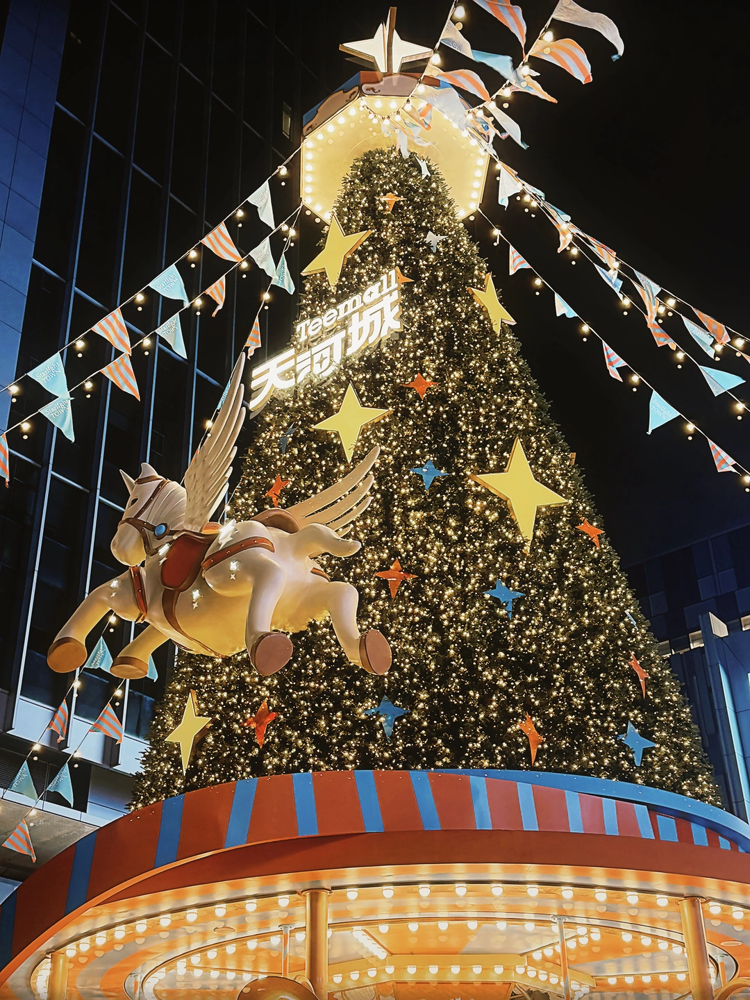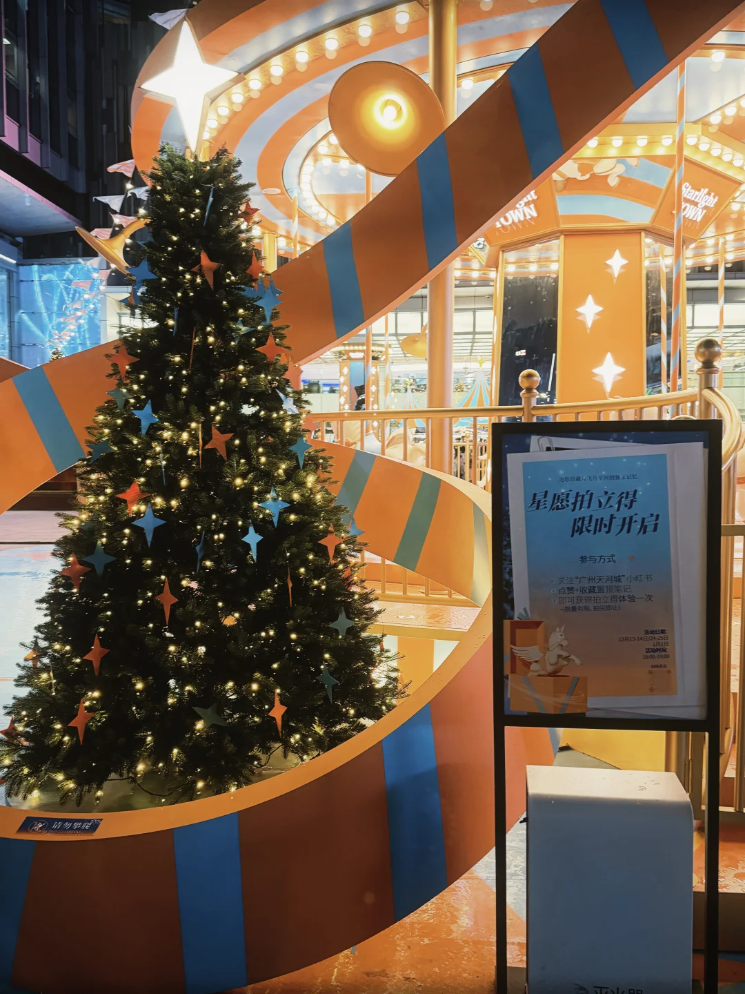 广州圣诞浓度1000%‼️ 圣诞树🎄🦄️独角兽旋转木马🎠 天河城圣诞免费旋转木马可以坐了‼️🎠 5分钟一趟!! 🌟在旋转木马找工作人员可以限时拍拍立得一张 🚇:体育西路E口天河城北门 ⌚️:天河城圣诞展期至26.1.25 📷:北门正面可以拍到中信大厦 🌟旁边有6颗小树🌲 觉得天环人太多的可以去这里!!