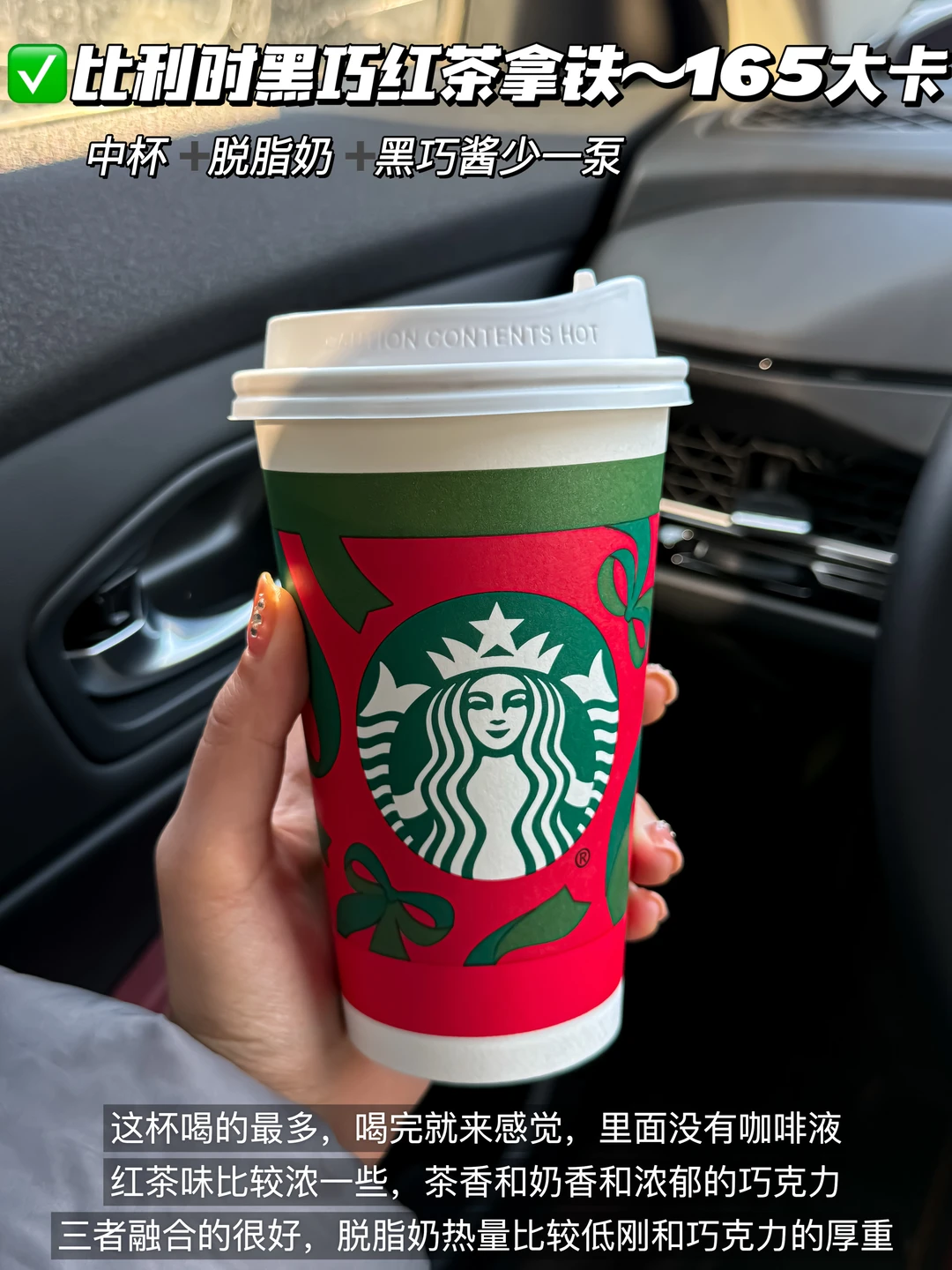 这杯没有咖啡液,红茶味比较浓一些,茶香和奶香和浓郁的巧克力,三者融合的很好,选脱脂奶热量比较低刚和巧克力的厚重,红茶味更加清新