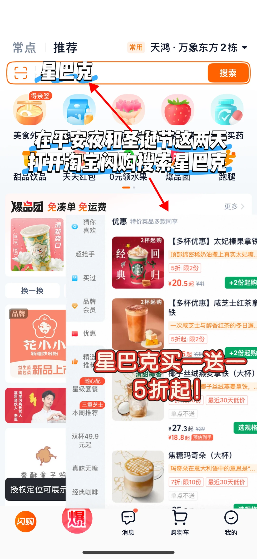 1️⃣ 打开淘宝闪购直接🔍“星巴克专星送”
