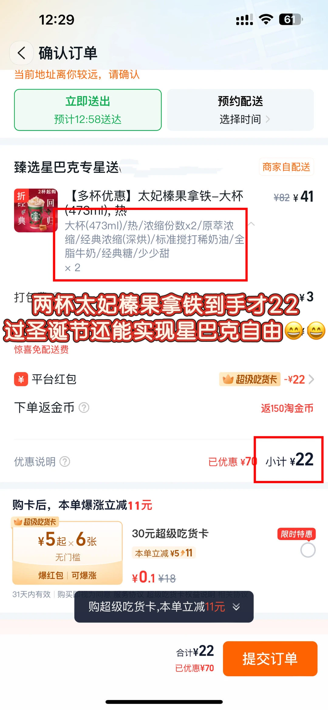 3️⃣ 叠加平台红包,亲测单杯最低12r+,美美购入星爸爸~