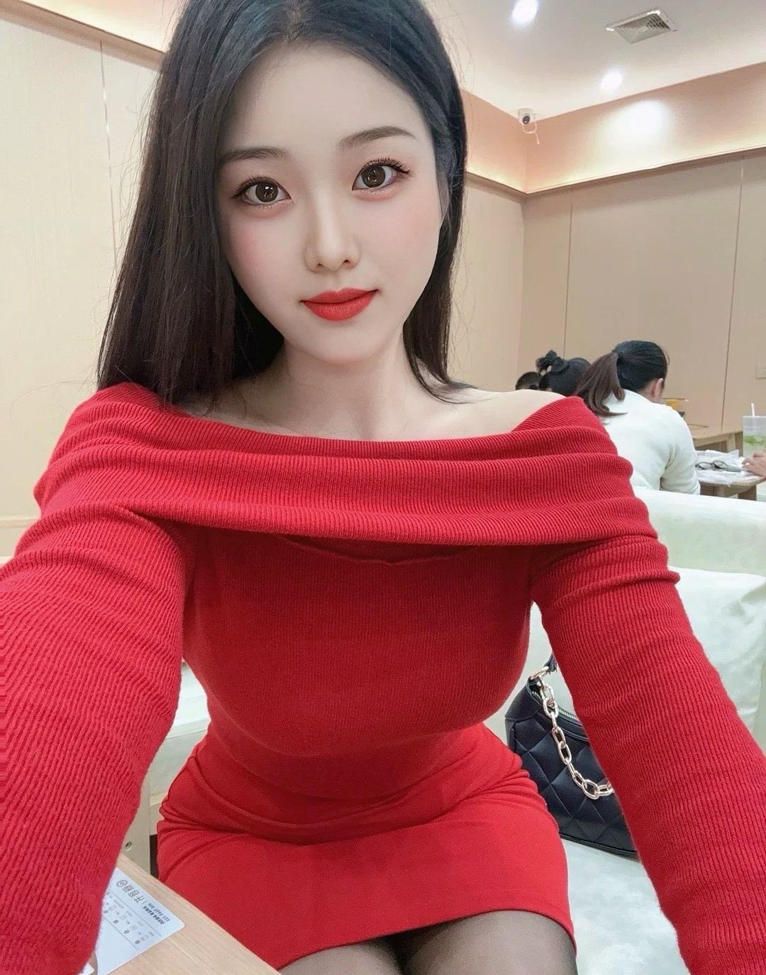 元气少女穿搭指南:红色露肩毛衣裙,元气满满!