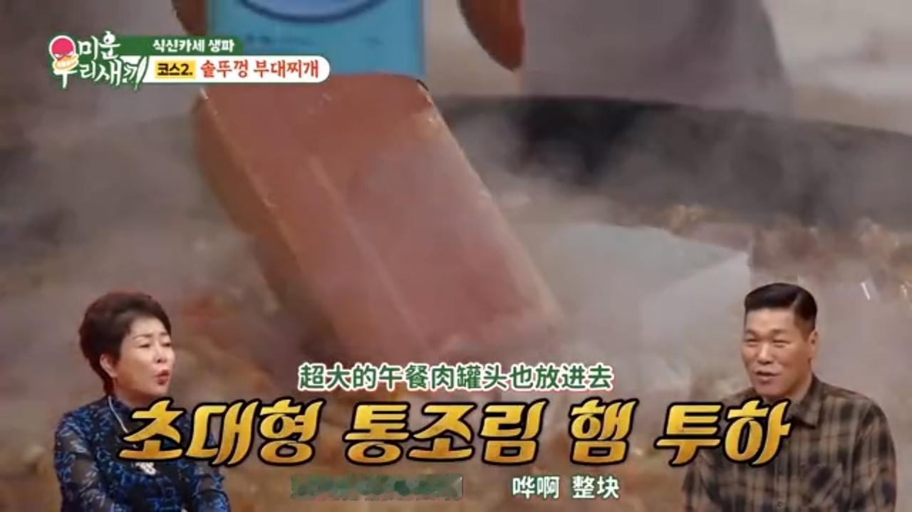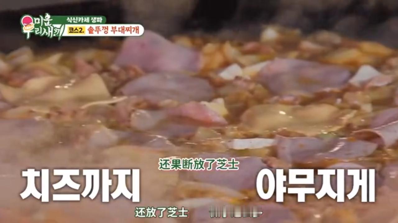 我最近看了一个综艺节目,他们所做的部队火锅,我看过之后一点食欲都没有,超大的午餐肉放进去,然后加上豆腐,放点芝士年糕,方便面。搞得跟整个乱炖似的,但是跟乱炖也有区别就是(我们国内的乱炖就是用粉条、猪肉包菜,也会放一点豆腐、但是不会放什么年糕芝士