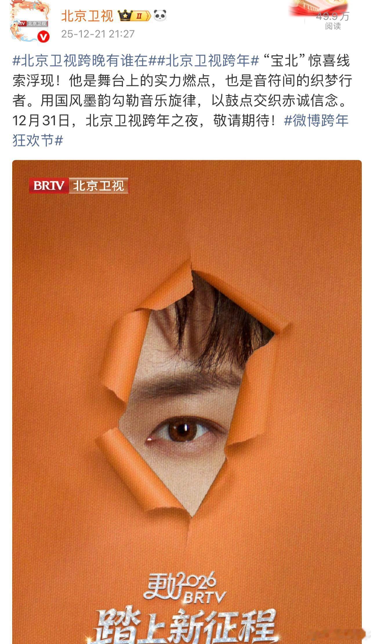 张艺兴官宣北京卫视跨年 终于等到这波官宣!张艺兴的舞台永远有新惊喜,精准卡点+超强感染力,12月31日蹲北京卫视,和他一起迎接崭新的2026!
