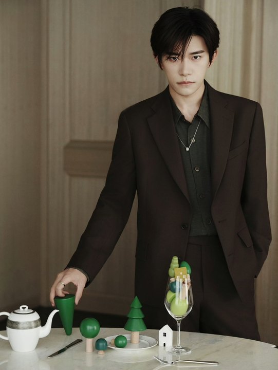 易烊千玺美拉德棕色西装 易烊千玺棕绿色叠穿 墨绿色衬衫好有韵味