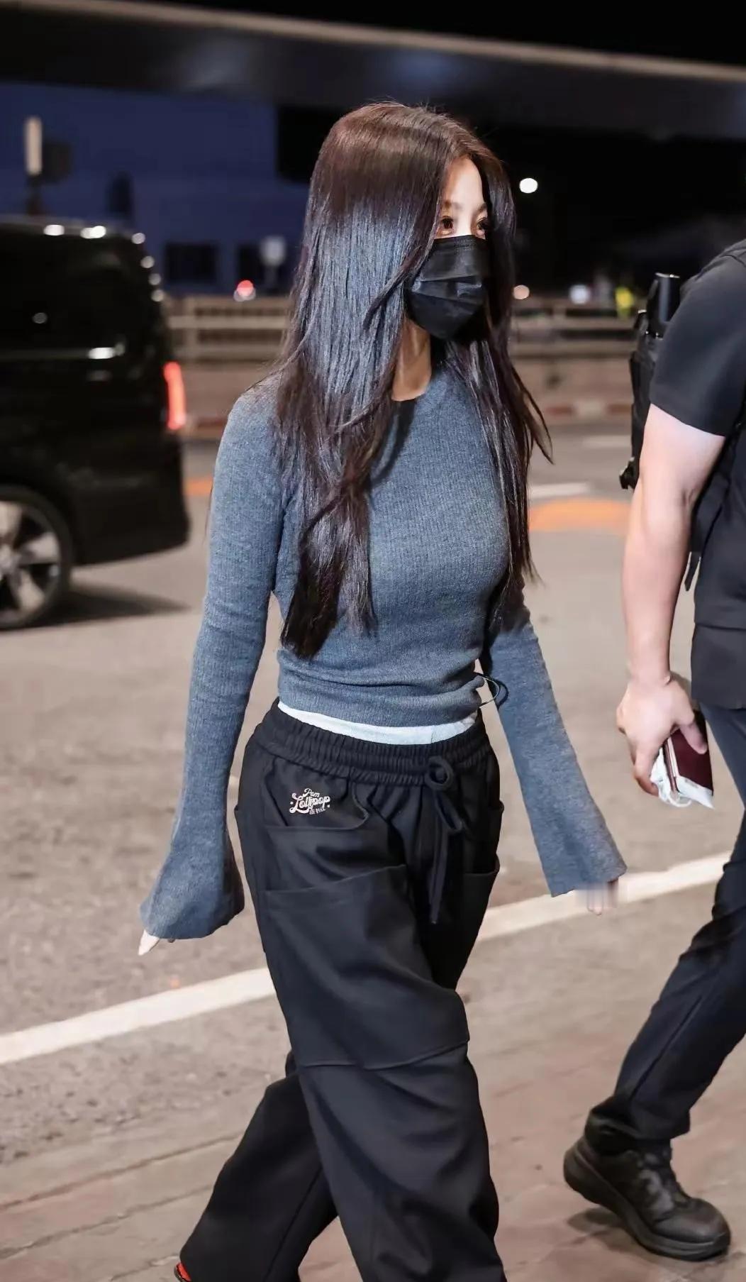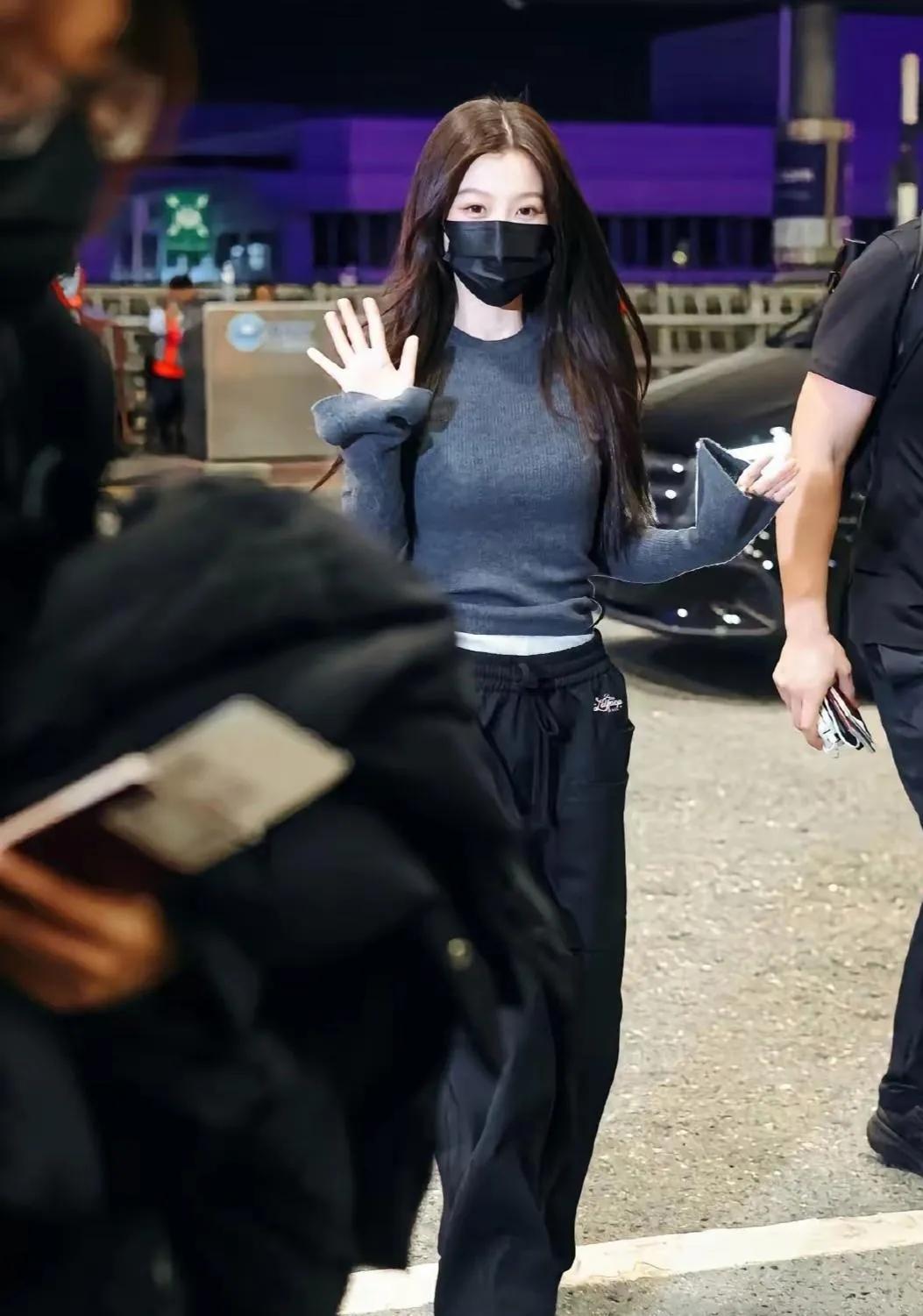 虞书欣上紧下松穿搭好会!修身针织衫配拖地裤,比例超惊艳 虞书欣的机场穿搭把“