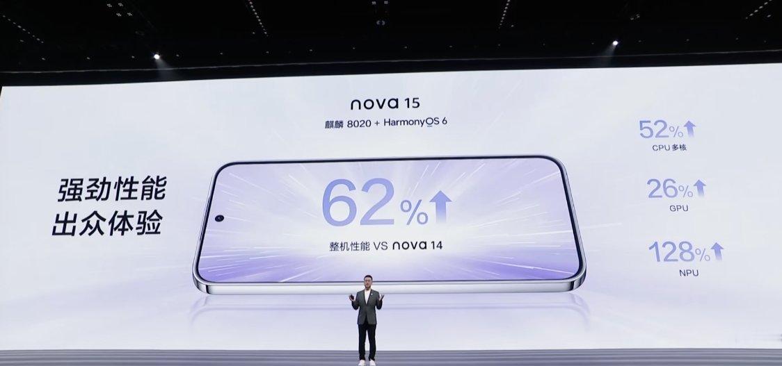 华为 nova 15 标准版首发麒麟 8020 处理器,支持 5A 网络,整机性能相比 nova 14 提升 62%,加入了低功耗模块,nova 标准版首次支持 AI 隔空手势、隔空传送、智感支付。 华为nova15正式发布 华为nova15