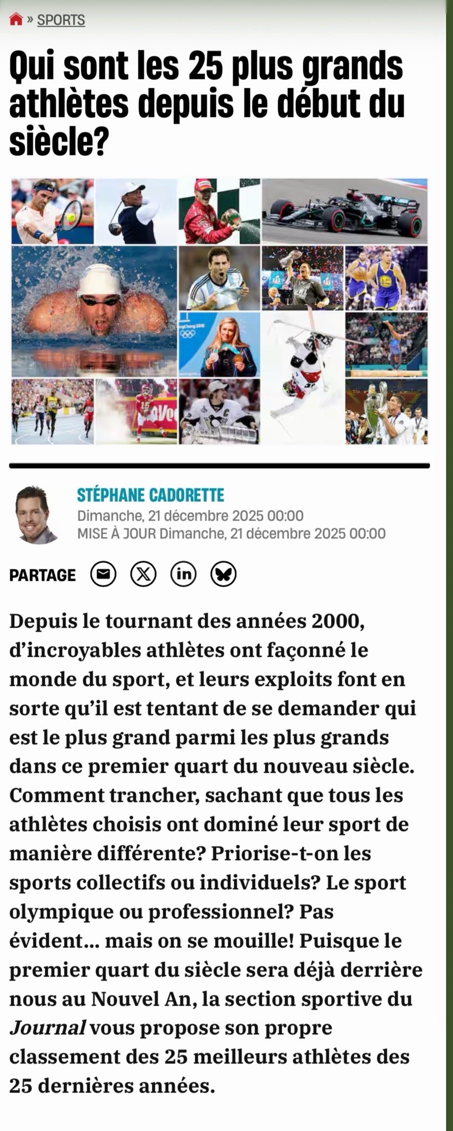 2025即将过去,🇨🇦加拿大媒体评选出的【过去25年最伟大的25位运动员】排