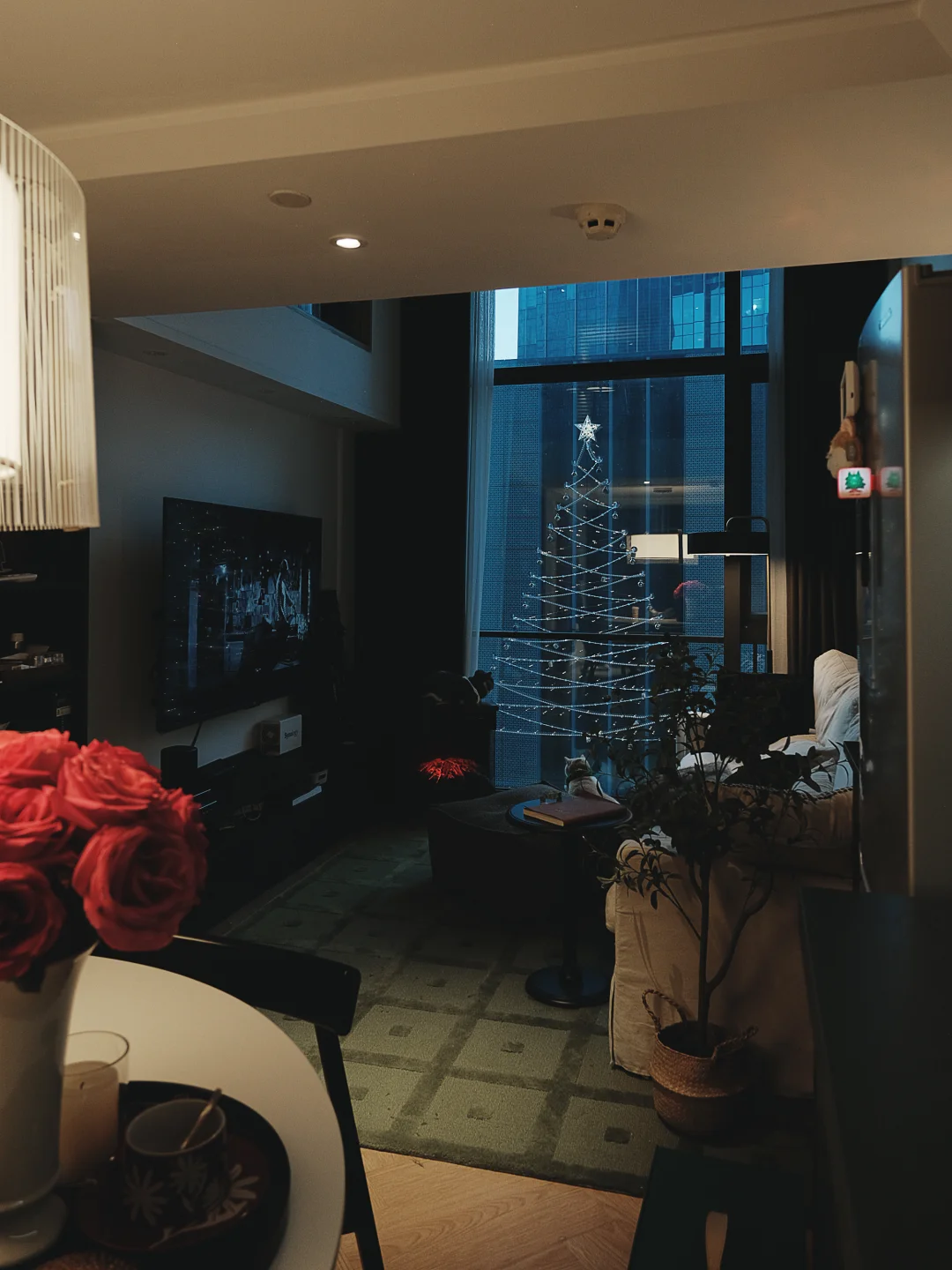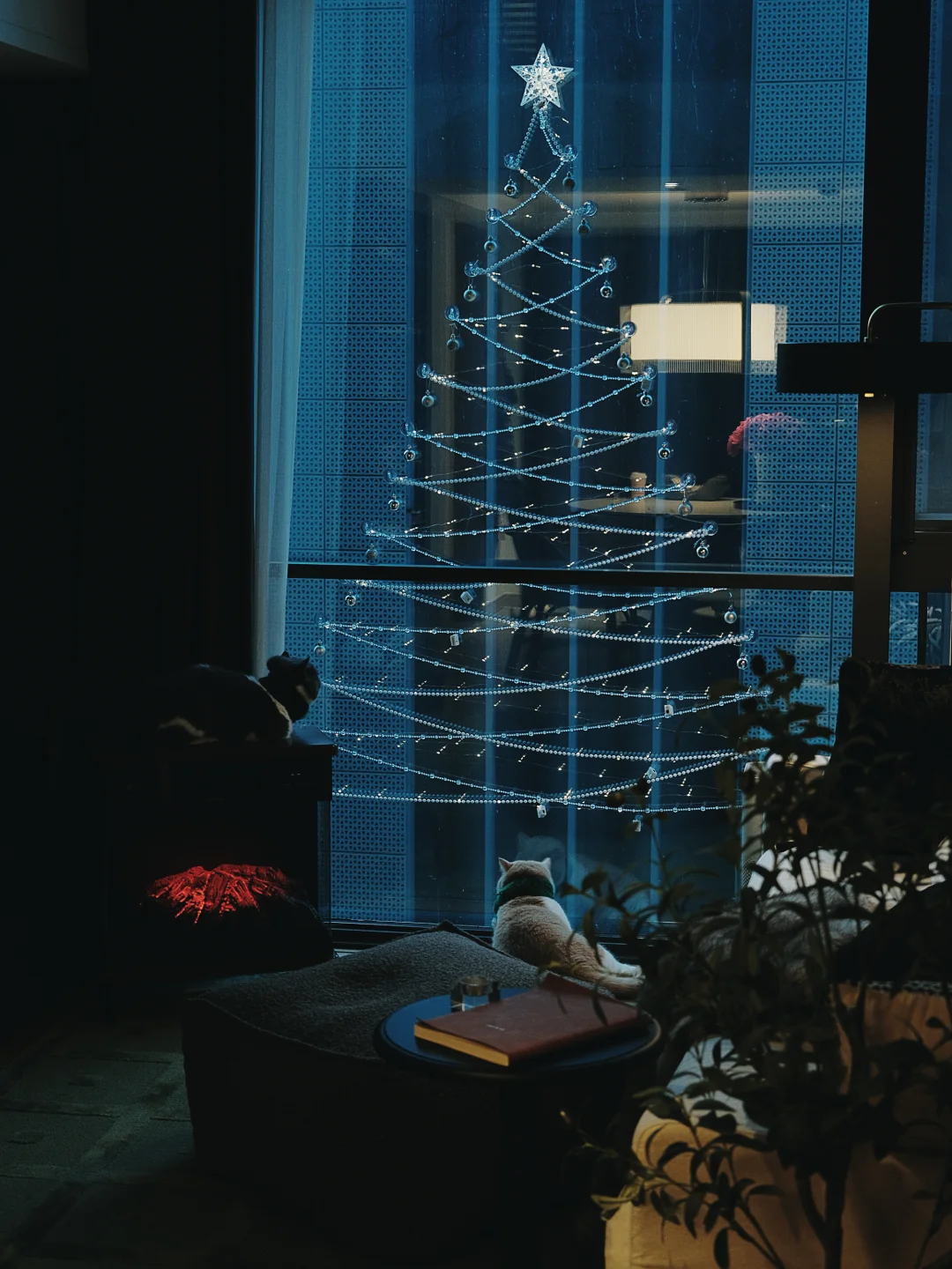 -材料:27个吸盘+2根装饰用的珠链+灯串+若干圣诞彩球+圣诞星