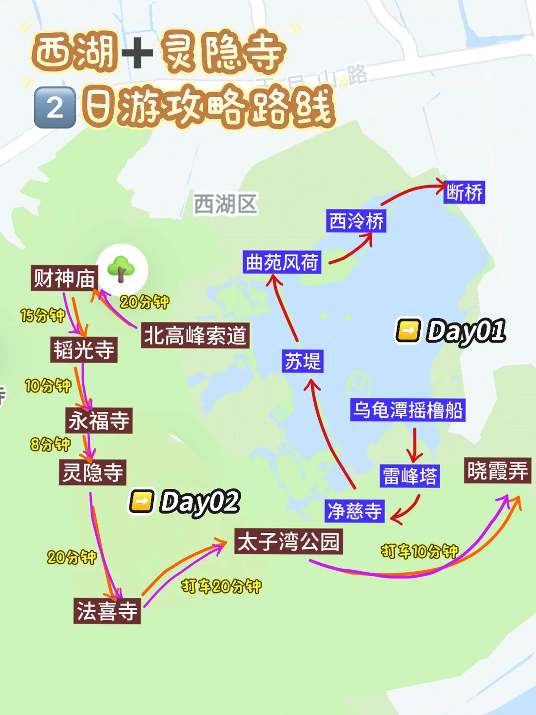 📍DAY-2: 北高峰 ▶️ 财神庙▶️韬光寺▶️永福寺▶️灵隐寺 ▶️ 法喜寺 ▶️ 太子湾 ▶️ 晓霞弄