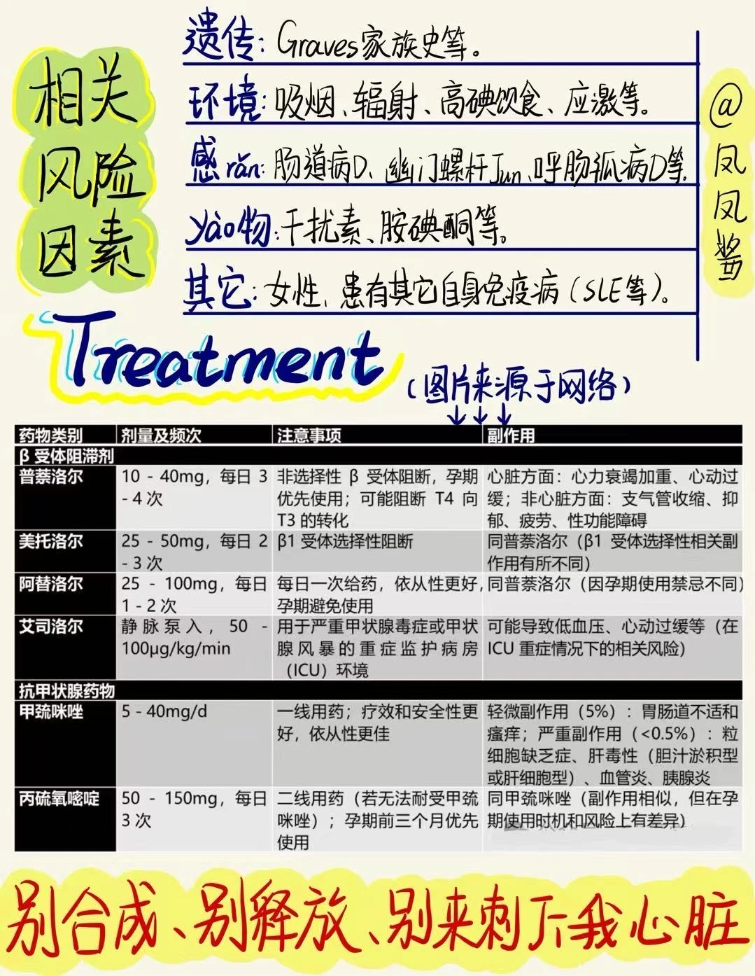 [向右R]一般的处理方式:1.抑制TH合成 2.抑制TH释放 3.保护心脏 具体怎么处理还是要根据个人具体情况啦,哈哈哈好像废话,但是确实是真话。