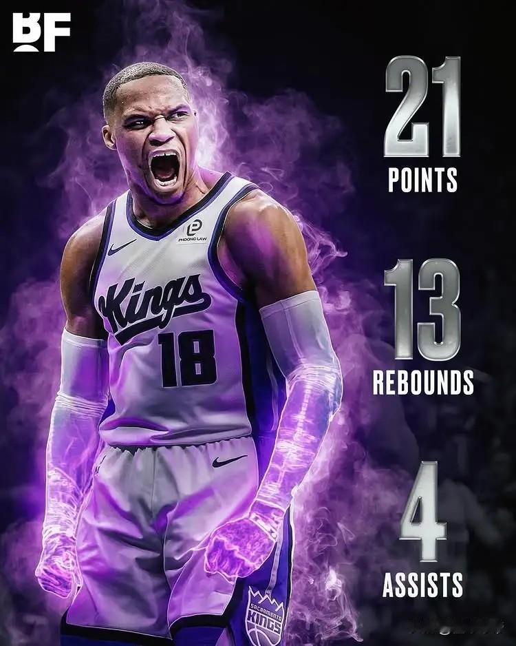 遇到大哥就来劲,威少爆砍21分13篮板打破NBA历史记录! 今天国王与火箭的比赛,威少又遇到了自己的大哥杜兰特,众所周知威少一遇到大哥就特别来劲,职业生涯与杜兰特交手17次,威少取得了10胜7负的压倒性战绩。 今天也不例外,威少出战29分钟,投篮24投8中,三分12中5,爆砍21分13篮板(6前场篮板)4助攻2抢断的数据,在常规时间投进绝平三分,把比赛带进了加时,最终在加时赛战胜了火箭。 威少也以37岁40天的年纪成为了NBA历史上单场至少拿到20分+10篮板+5记三分的最老后卫。 火箭本来是联盟最能抢篮板的球队,但是今天却在篮板上以47-55输给了没有小萨的国王,威少的13个篮板居功至伟。