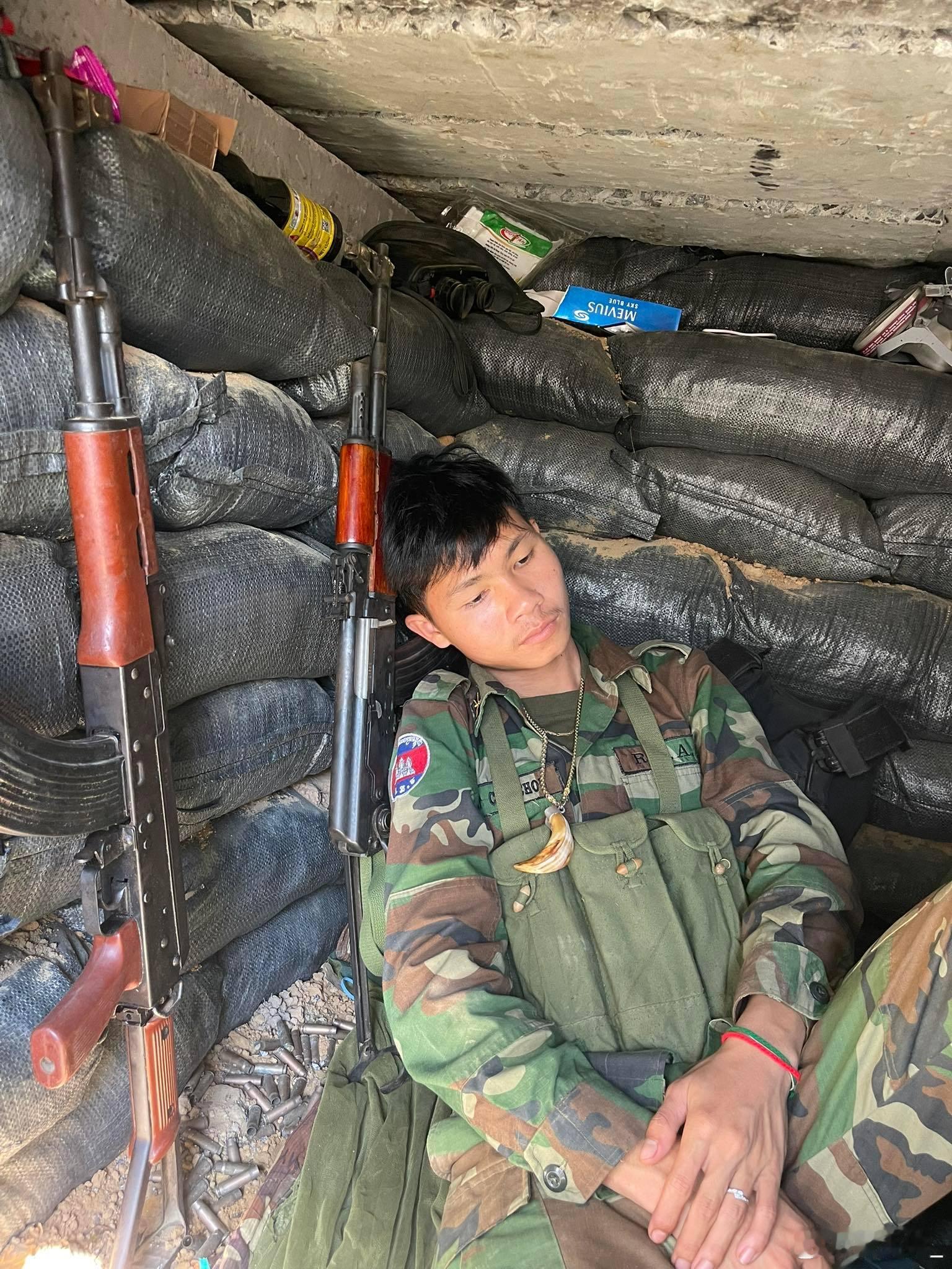柬埔寨士兵在前沿阵地,手持56-1,旁边还放一支56-2,成色都很新。泰柬边境再次交火