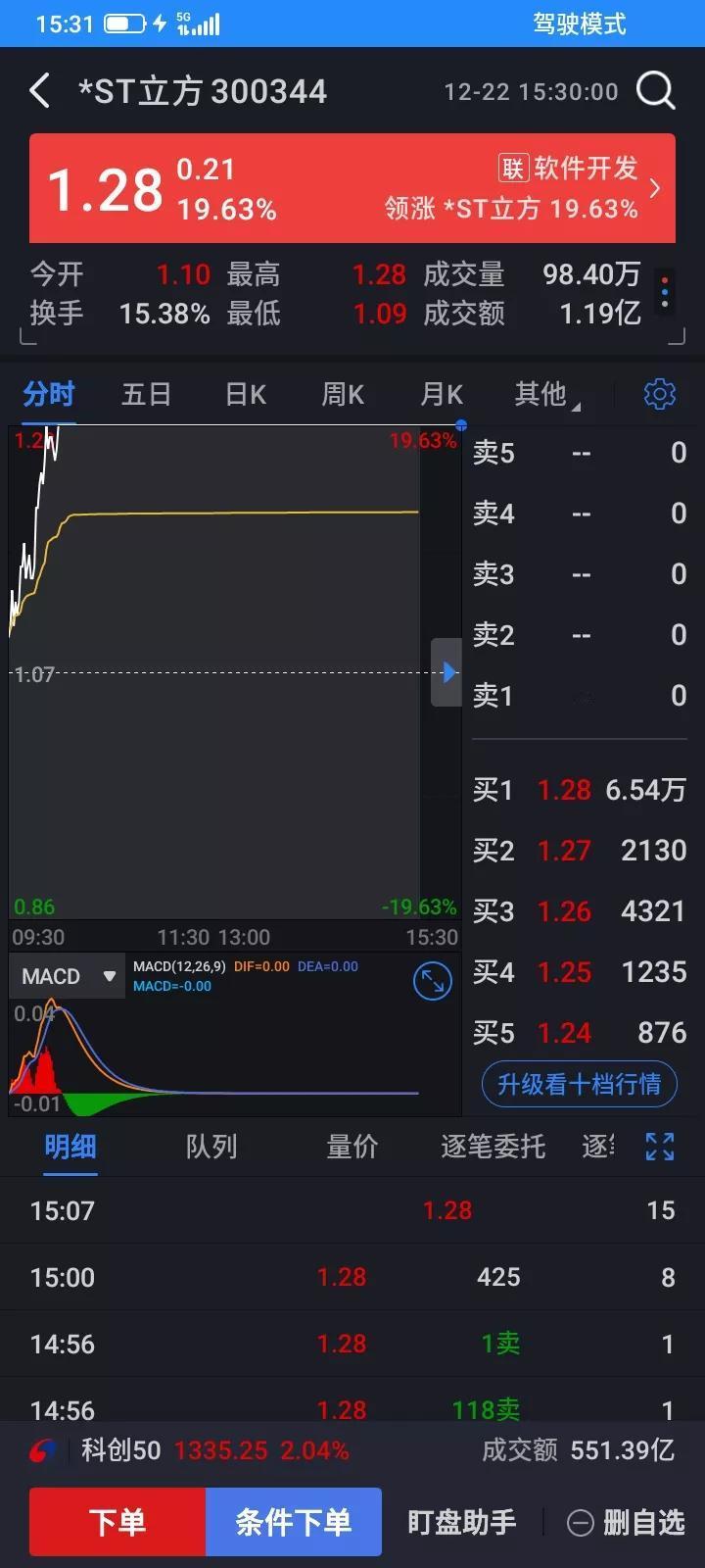 这只垃圾股,面临退市的风险,我前两天才忍痛割肉止损了,今天就大反转了,又有什么利好来了吗,起死回生了吗?今天竟然20cm涨停了,又精准的把我洗出来了。股市天天充满无限可能。