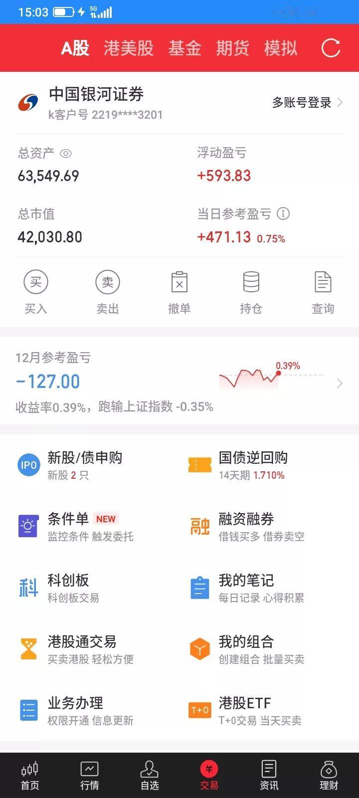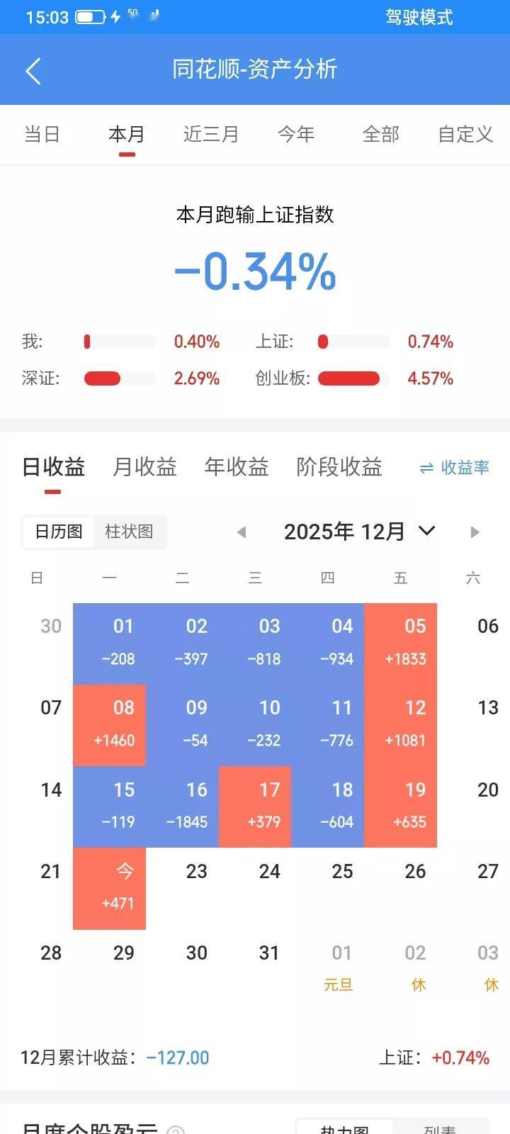 2025.12.22,今天仓位比较轻了,反弹就来了,不买不跌,不卖不涨。总是不断出错。 今天金森下跌,最低跌到12.09,反弹上涨,快速拉升,但是反弹力度不大,想做个t,于是以12.21又委托买入100股,成交之后就不上涨了,收盘也没有多少差价,放弃做t计划,补仓100股,明天再卖。 早上看到通信设备etf高开高走,于是以1.265买入1000股,胆小了,买少了,成交之后就不断上涨,最高冲到1.287,然后回落,收盘以1.283卖掉3400股,降低一些仓位,锁定部分利润,还有3600股,继续让利润奔跑。 互联网etf也是高开高走,以为会上涨了,于是回落中以0.869买入3000股,但是错了,买入之后就下跌了,老毛病又犯了,下跌中不断补仓,以0.866买入5000股,0.863买入2000股,最低跌到0.860,收盘反弹了一点点,亏损才少了一点点,今天又做错了,多亏了24块钱。错了就放弃做t计划,继续补仓。等明天上涨再卖,下跌就再扛一扛。 其它两只股票也反弹上涨了一点点。今天上能最高冲到37元,收盘跌到36.17元,再持有几天看看,株冶也是冲高回落。浮盈一场。 今天总市值4.2万元,总资产6.35万元,今天总体账户反弹回本470元。仓位轻了,反弹就来了,仓位重了,下跌也就不期而至,反复被收割。