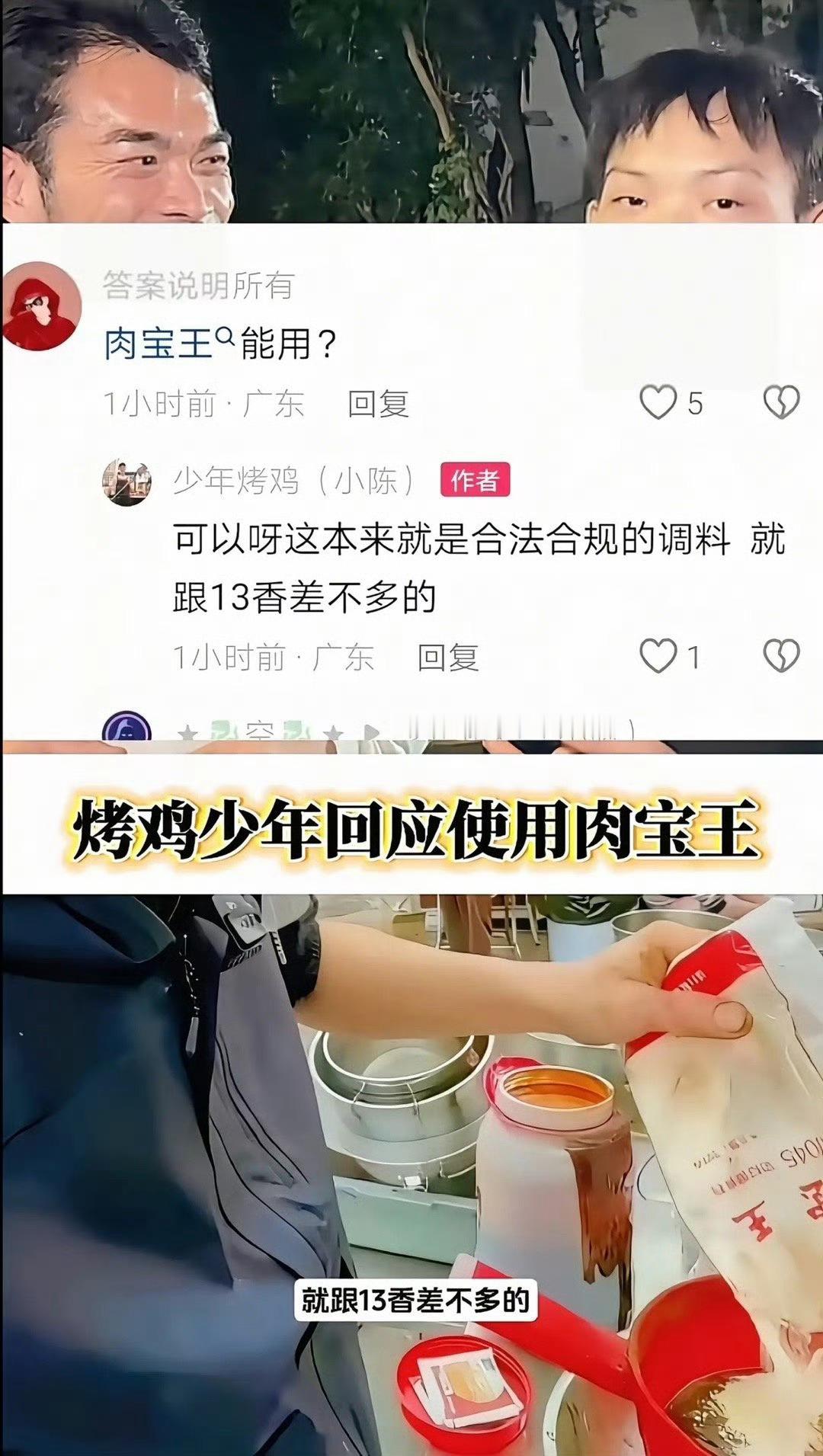 烤鸡少年承认用肉宝王调味称是正规厂家生产有许可证的合法调味料,已主动配合相关部
