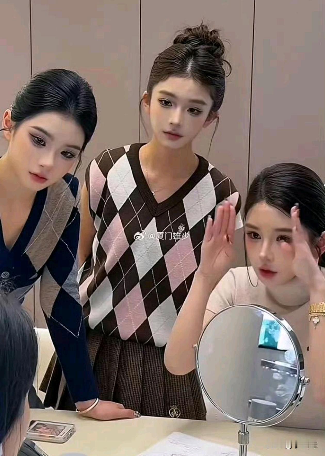 三个用同一张,现在的妆造都是清一色的网红脸