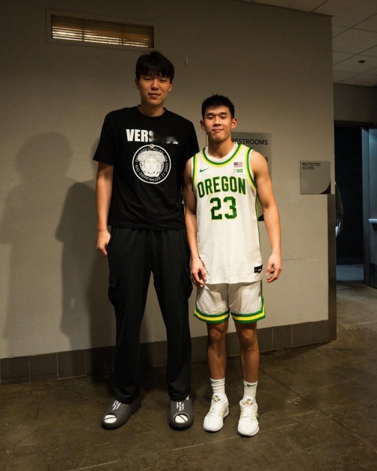 杨瀚森和林葳的合影来咯,一起在外打拼的年轻人,未来是你们的。杨瀚森观战林葳nba