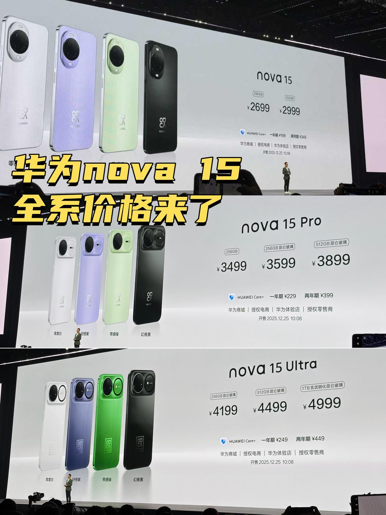 华为今年咋了?nova15有点... 华为nova 15全系价格来了👇 标准版2699起、Pro版3499起、Ultra版4199起 顶配也才4999🤯感觉能买Ultra就直接上吧 这价格真的比之前香好多啊 而且今年的nova 15系列可以说是史上zui强nova 旗舰级的配置和麒麟9010s芯片 就连前置也整上了红枫原色镜头 感觉它的影像强得不像nova,你怎么看?