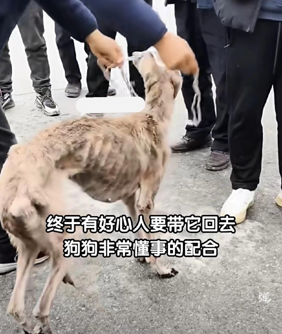 看哭了!一条瘦成皮包骨的的流浪狗拘站在人群中,非常主动地希望有人能够收留自己。它丑陋的模样让人们纷纷为它驻足! 它一定是预感到了今天能够遇到自己的神,所以它无惧人类异样的眼光,勇敢的走向了人群,可人们看着它如此丑陋,无一人向它伸出手。 确实,它瘦骨嶙峋,毛色灰暗且满是泥土,看起来像一只寿命殆尽的丧尸狗。围观的人们对它指指点点,或许是因为从没有见过这么丑陋的狗。 它怯怯地看向围观的人群,这些人的眼神,都没有让它感受到关怀。正当它失望准备离开的时候,一双大手将一根麻绳拧成环套向了它的脖子。 或许他在流浪的时候曾无数次被人捆绑、虐待。但此时此刻它却没有挣扎或逃跑,甚至还主动将头凑过去,让对方能够更快更好的栓住自己。 它主动将身体转过来,抬头看了一眼,是一个看起来很慈祥的老爷爷,那眼神,就是它要找的神! 那一刻,它终于有了自己的主人,它终于不用再流浪。最深的信任,就是放下所有的戒备!你有过收留流浪狗流浪猫的经历吗 狗狗