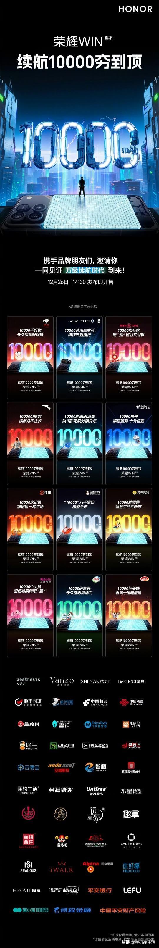手机行业正式进入万级续航时代! 今日,荣耀官方宣布手机行业正式进入万级续航时代! 12月26日14:30,“万级续航扛把子”荣耀WIN将正式登场! 荣耀WIN 荣耀win